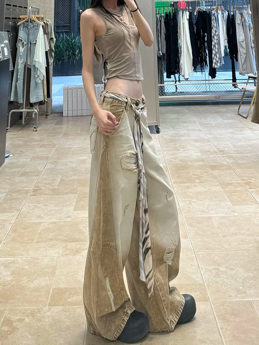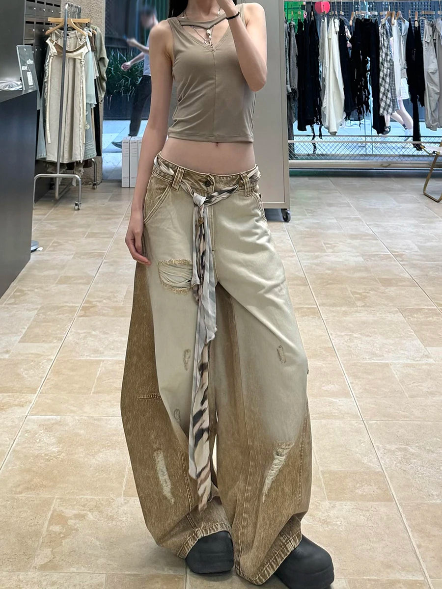 Vintage Washed Ombre Distressed Boyfriend Jeans