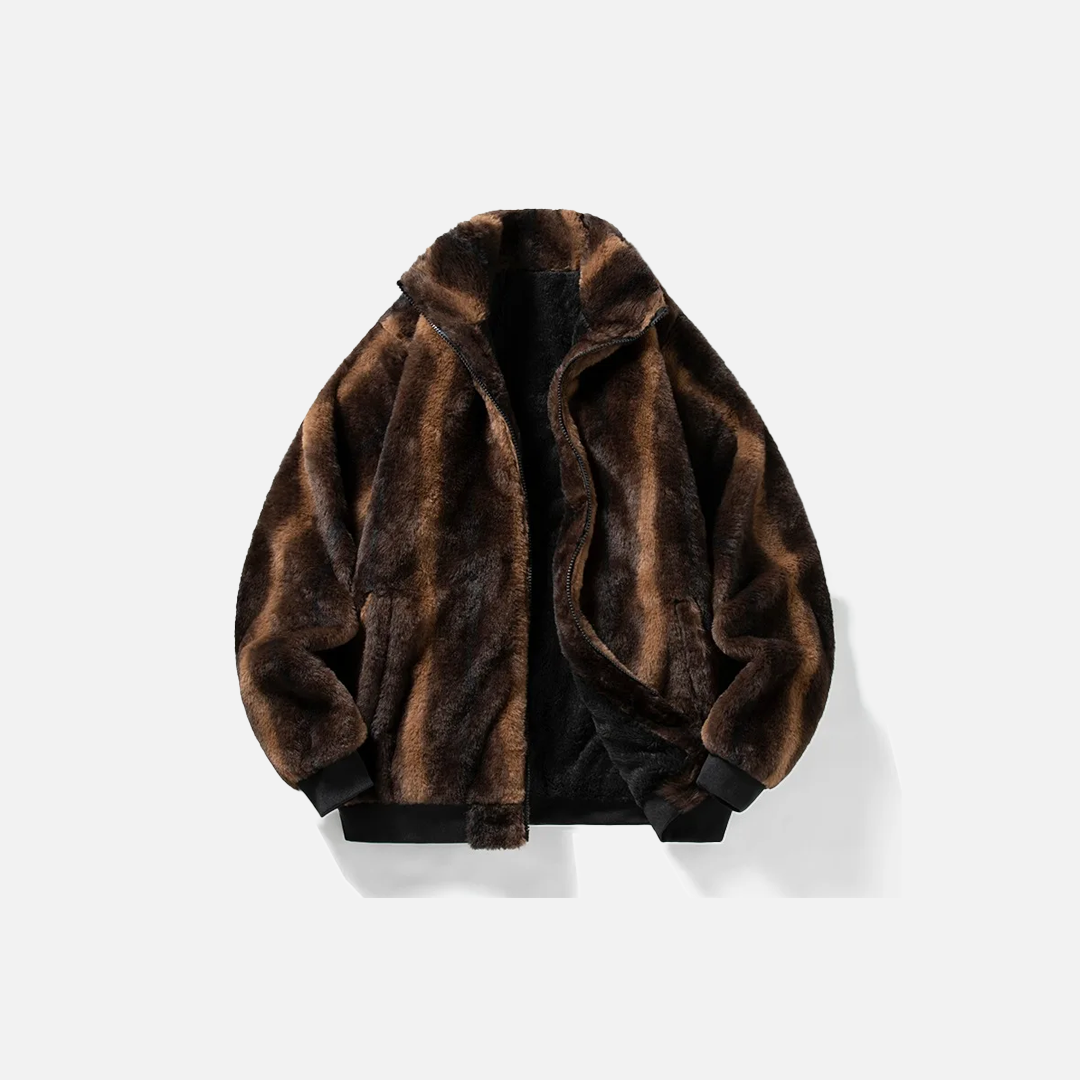 Warm Windproof Fleece-Lined FAux Fur Jacket