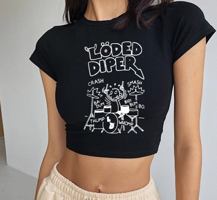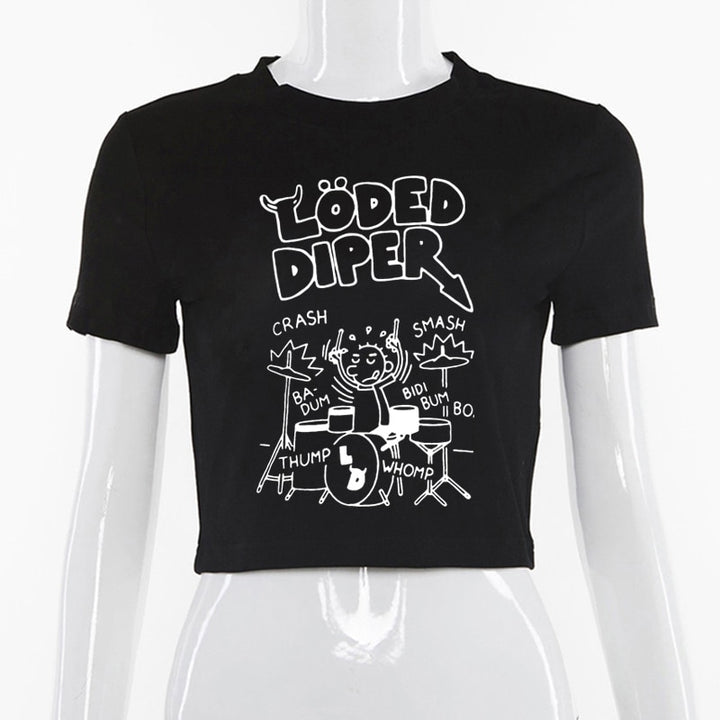 Y2K Drummer Gothic Crop Top mit Buchstabenmuster