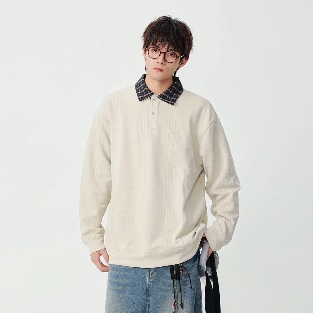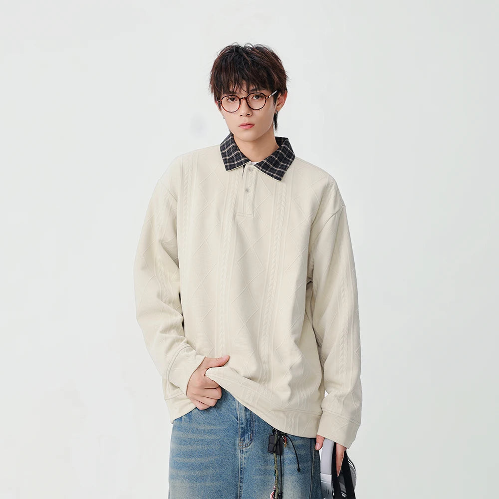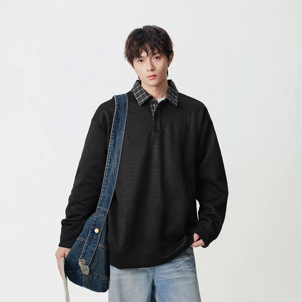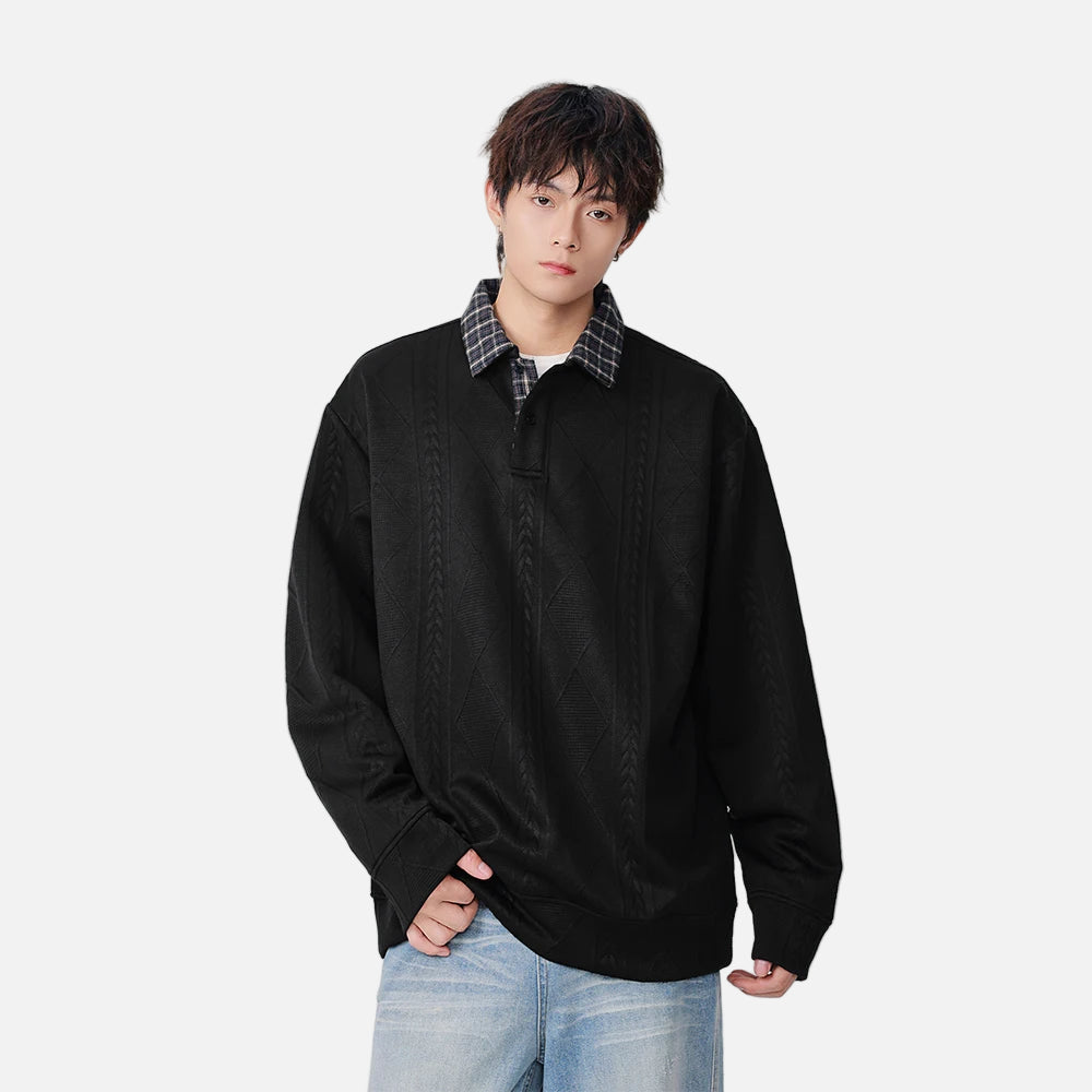 Y2K Plaid Collar Loose-Fit Polo Sweater