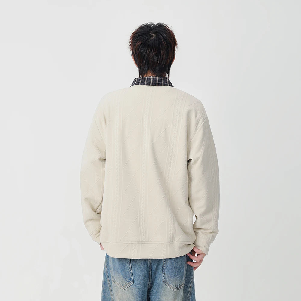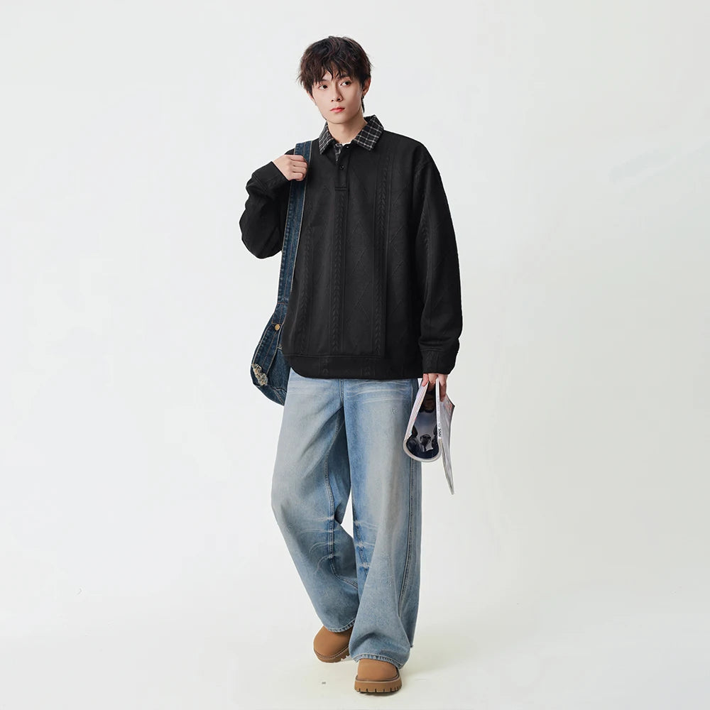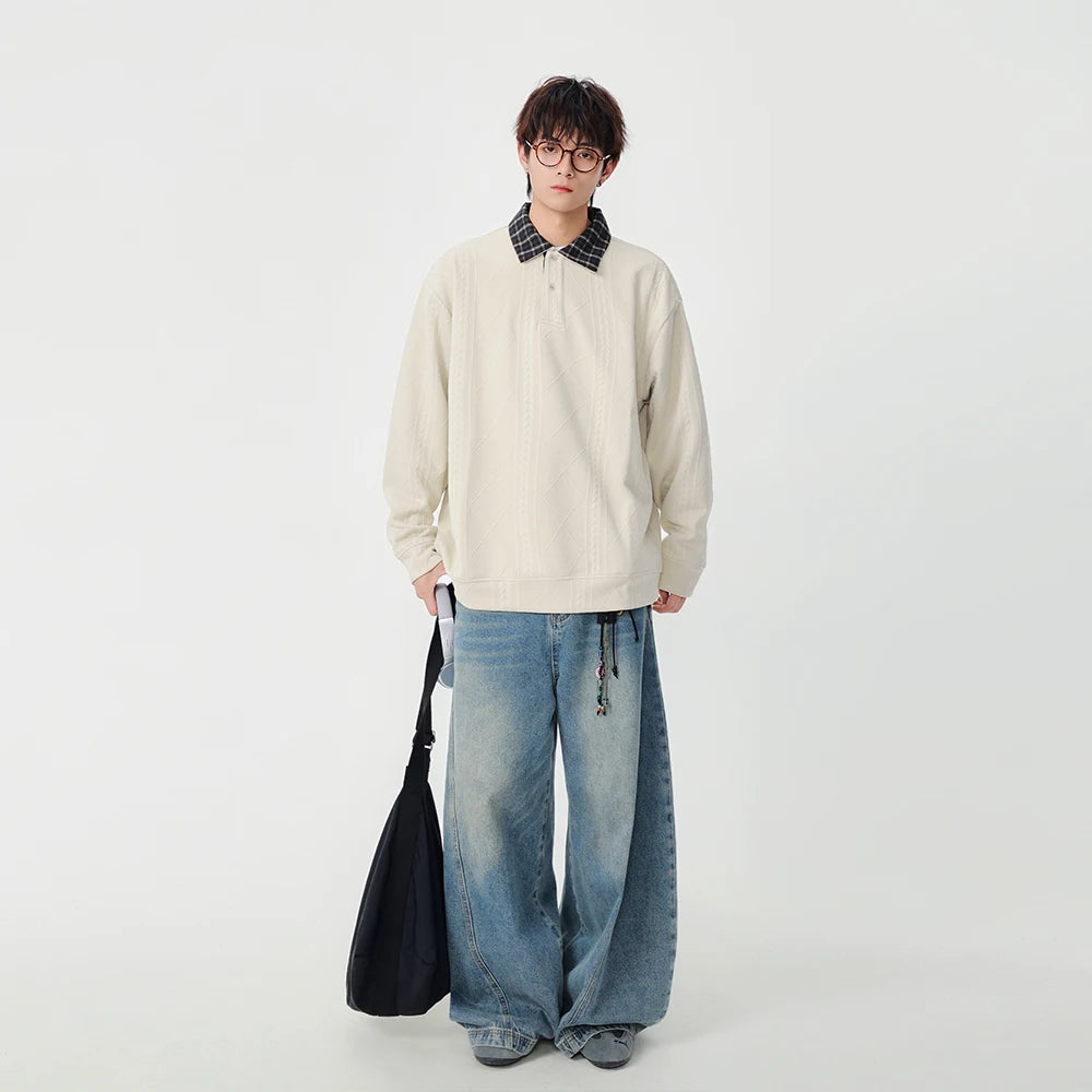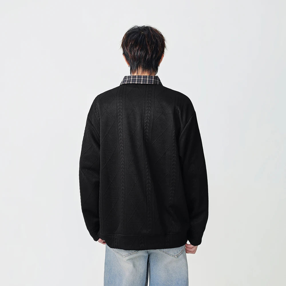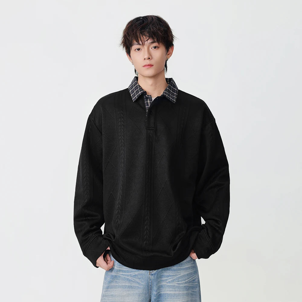 Y2K Plaid Collar Loose-Fit Polo Sweater