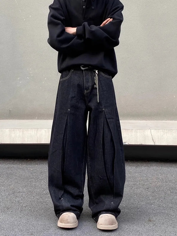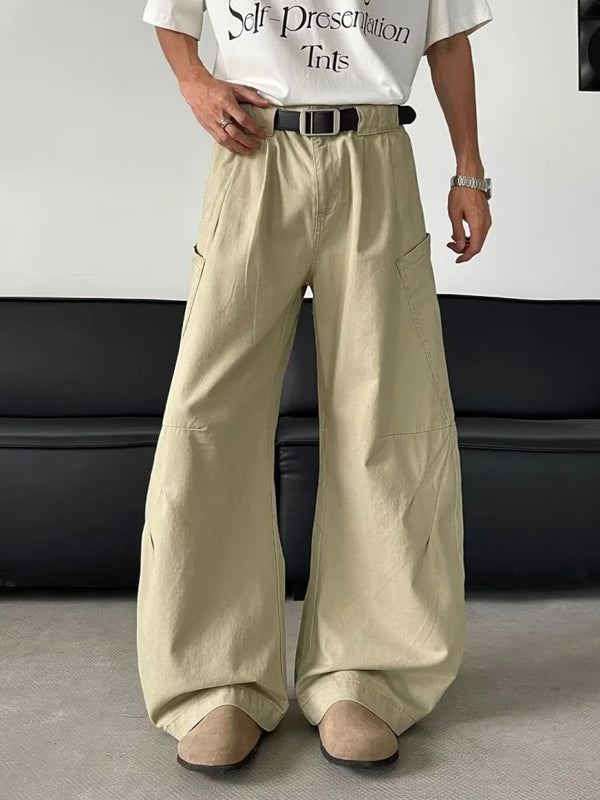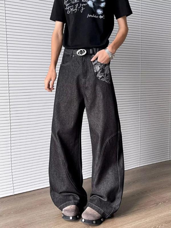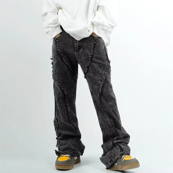 Durable High Waist Raw Edge Wide Leg Cargo Jeans