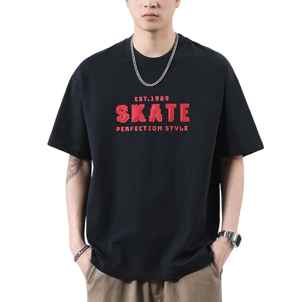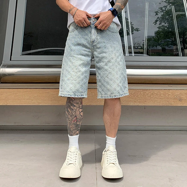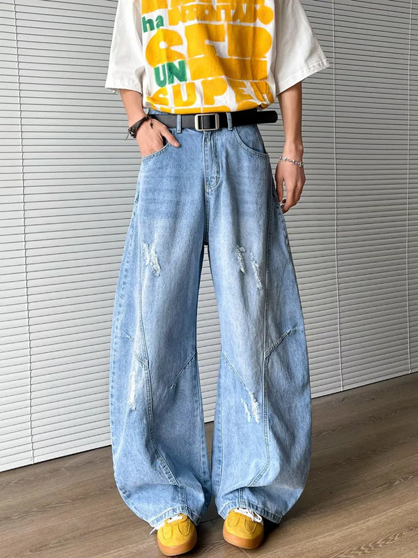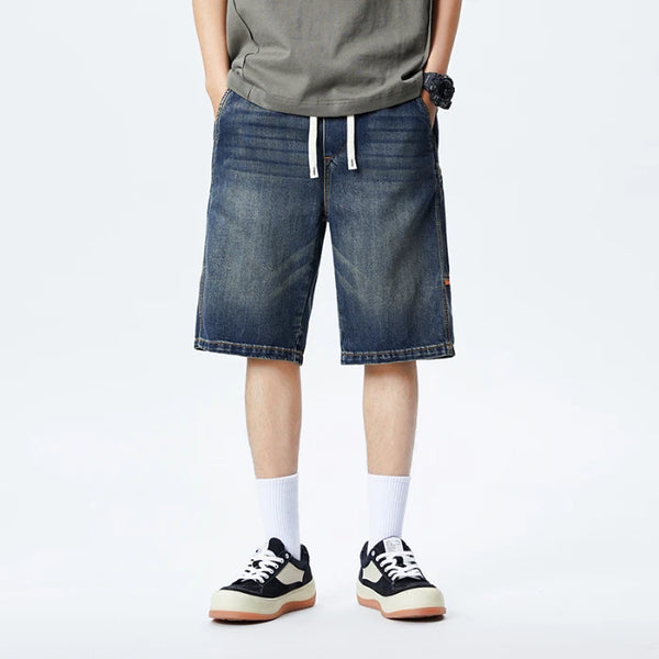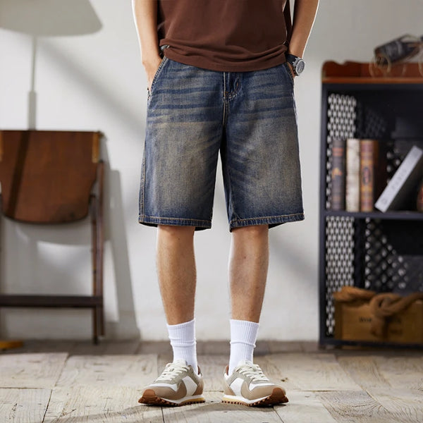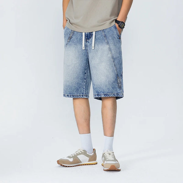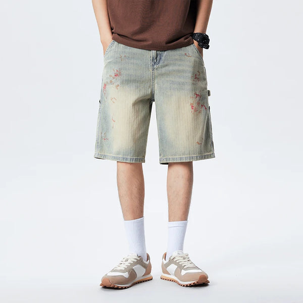 Vintage Letter Print Wide Leg Washed Denim Jorts