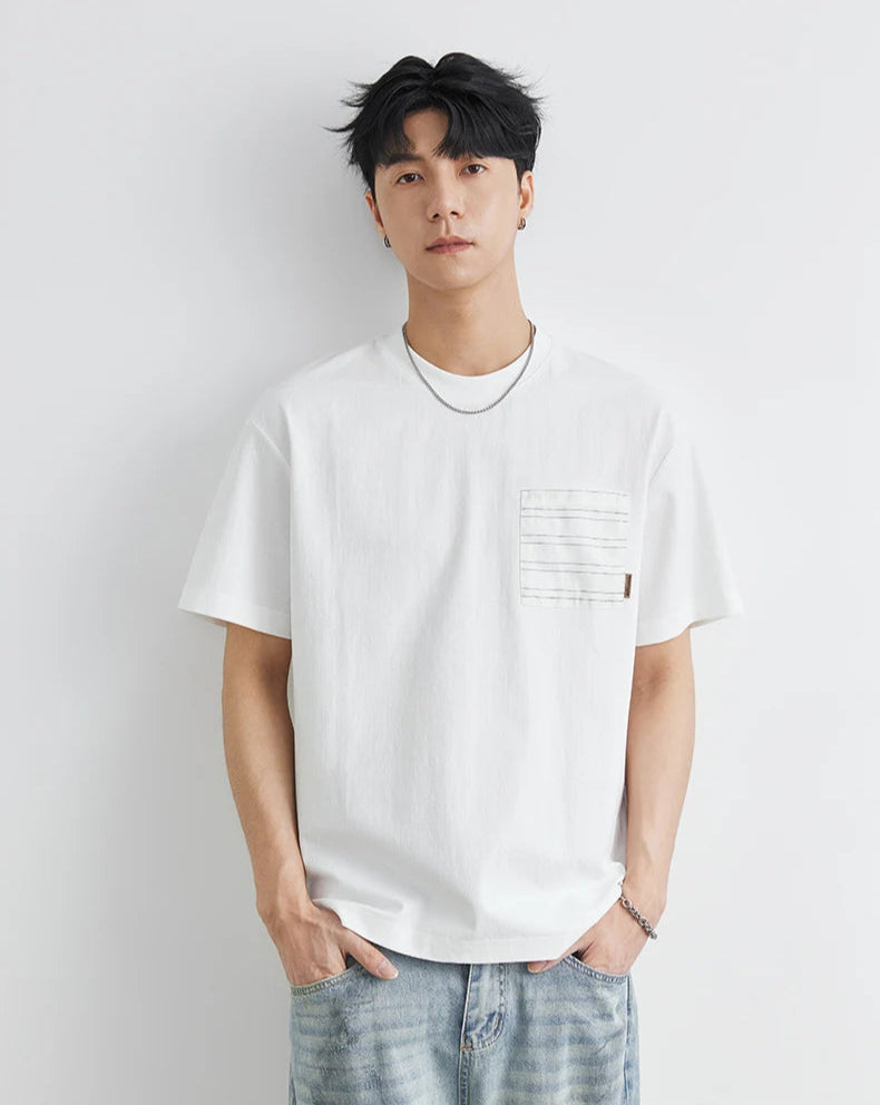 Korean Stylish Pocket Stitch Short Sleeve T-Shirt