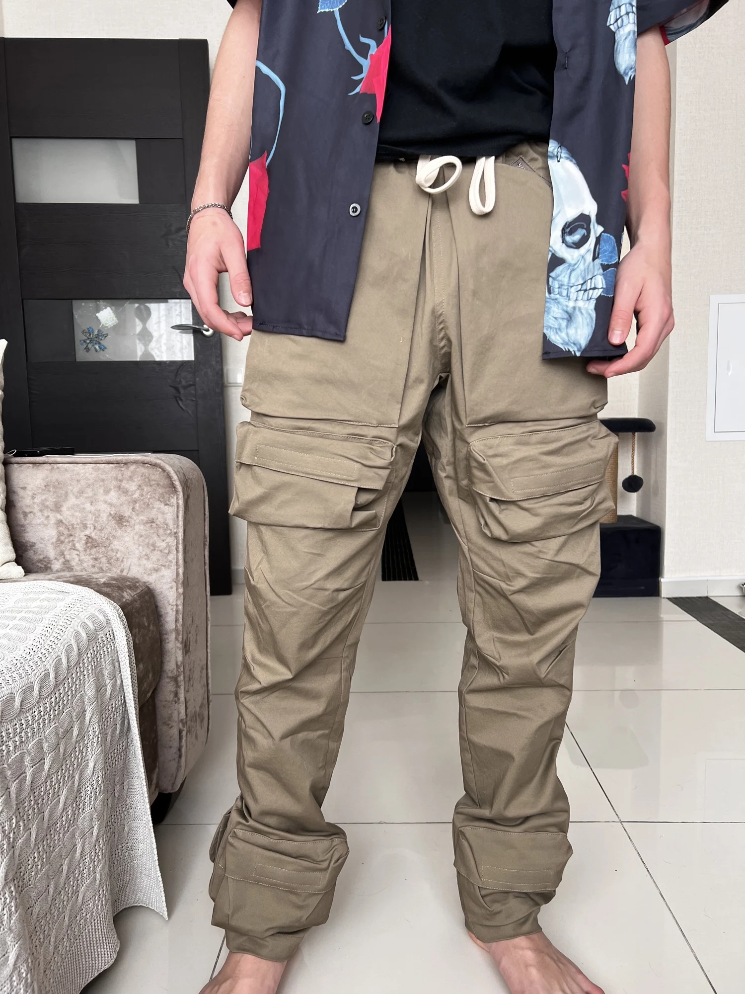 Super dope cargo pants 👏🏼 Thick cotton👖Great color (Gray Green) that I'm missing in my wardrobe 😻 I’m 1m65 60kg fit ok - It's a bit long for me 🥹 but it's fine to put on shoes 👟 Quality goes hand in hand with the price ✨ The seller responds to inquiries very quickly 🌚🌝 Highly recommended to buy homies 🫵🏼
