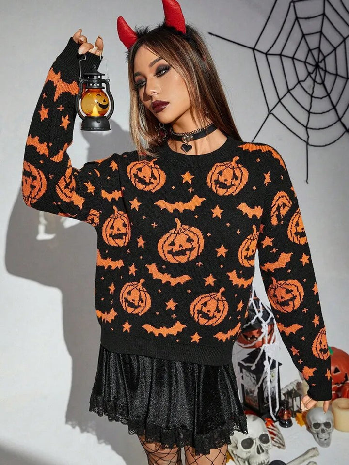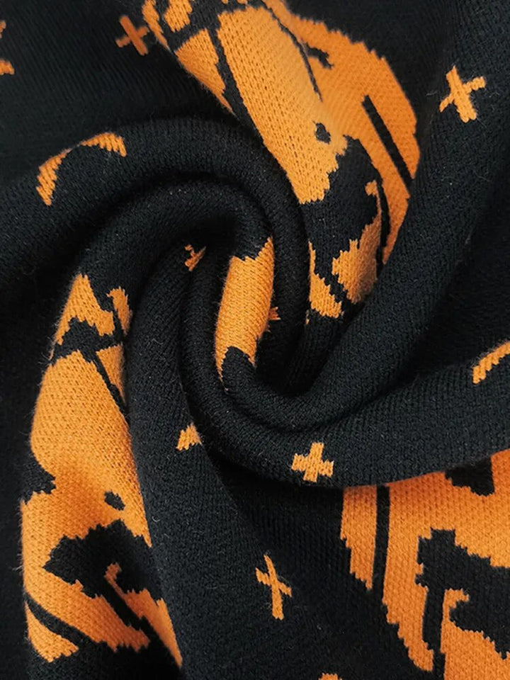 Bring a sense of chill and coziness to Halloween. Look no further than the Pumpkin Bats knitted sweater! Its classic thickness and snug fit ensure you look spooktacular and feel like you're in a warm embrace! Grab yours now!