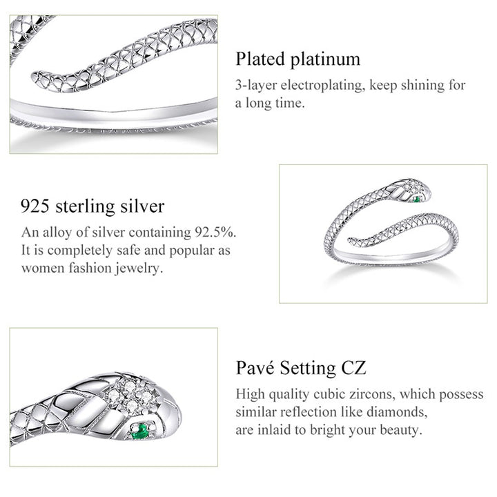 Snake 925 Sterling Silver Platinum Plated Ring