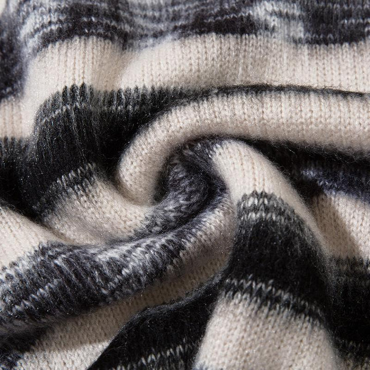 This Striped Loose Sweater boasts an O-neck collar for timeless sophistication and is crafted from breathable yet durable Acrylic of Standard Thickness! Who could ask for more?!
