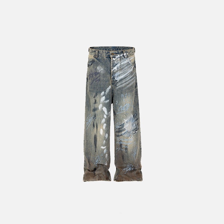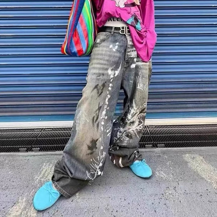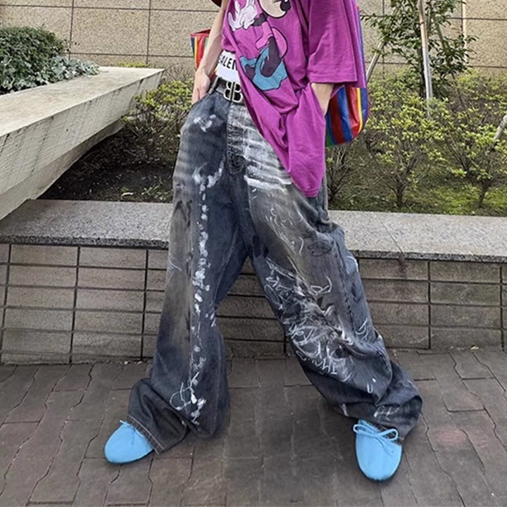 Wide-leg Baggy Graffiti Jeans