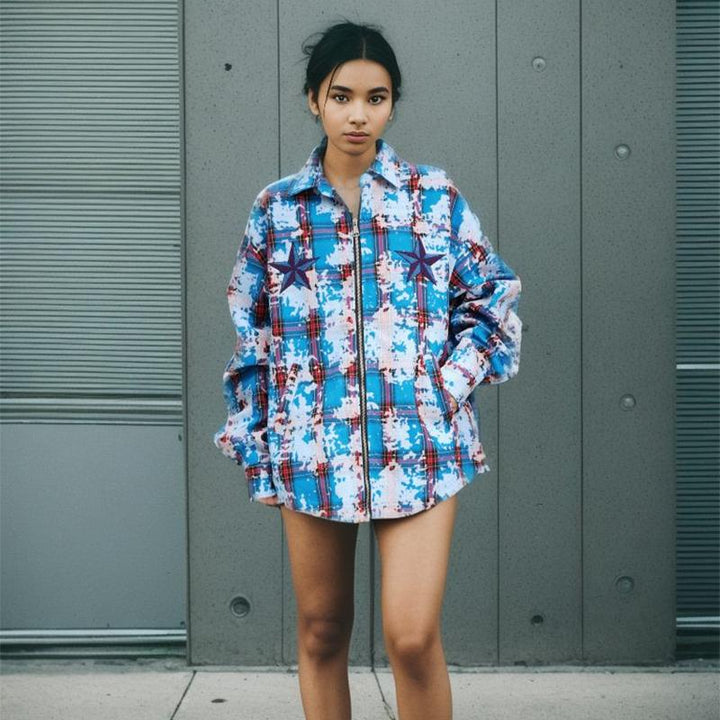Y2K Star Embroidery Zip-up Jacket