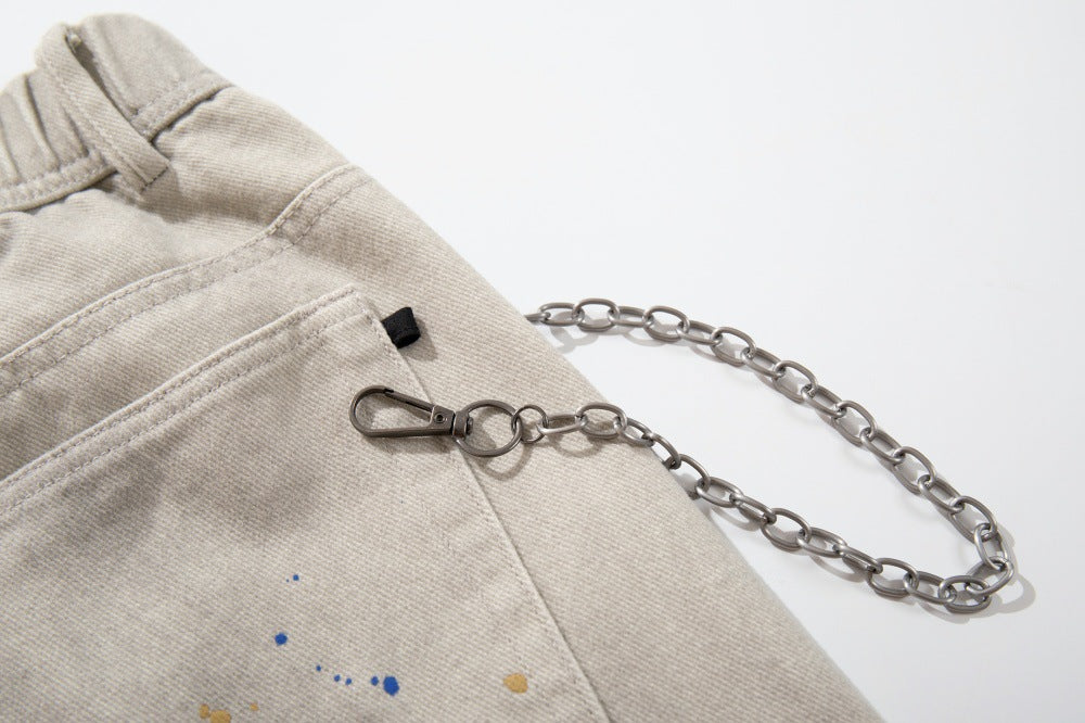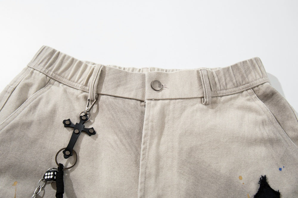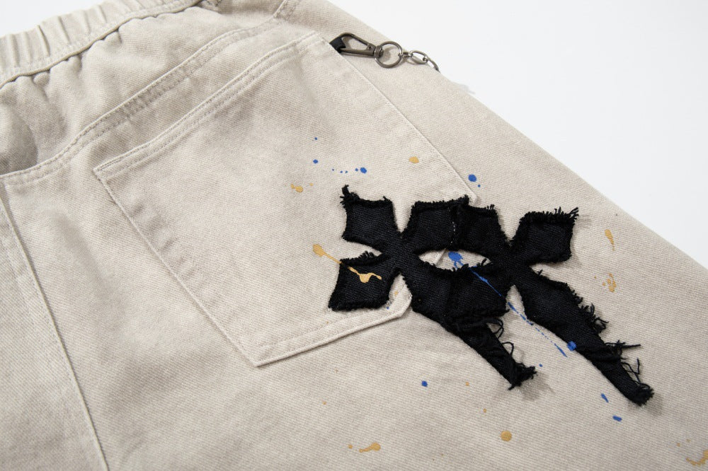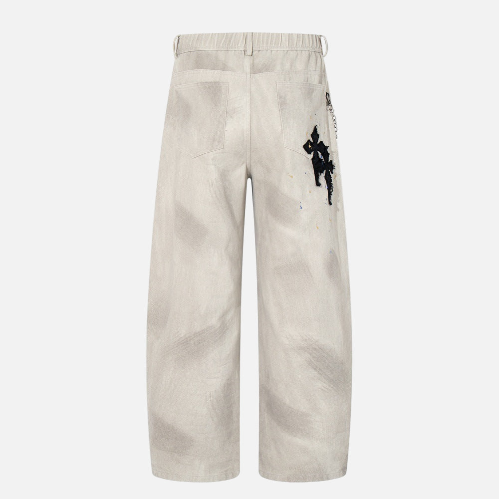 Gothic Cross Embroidered Distressed Denim Jeans