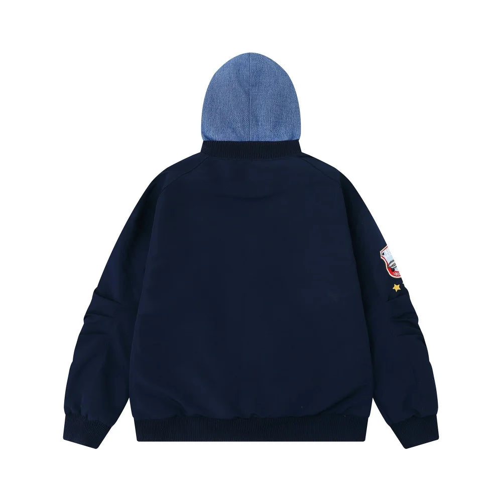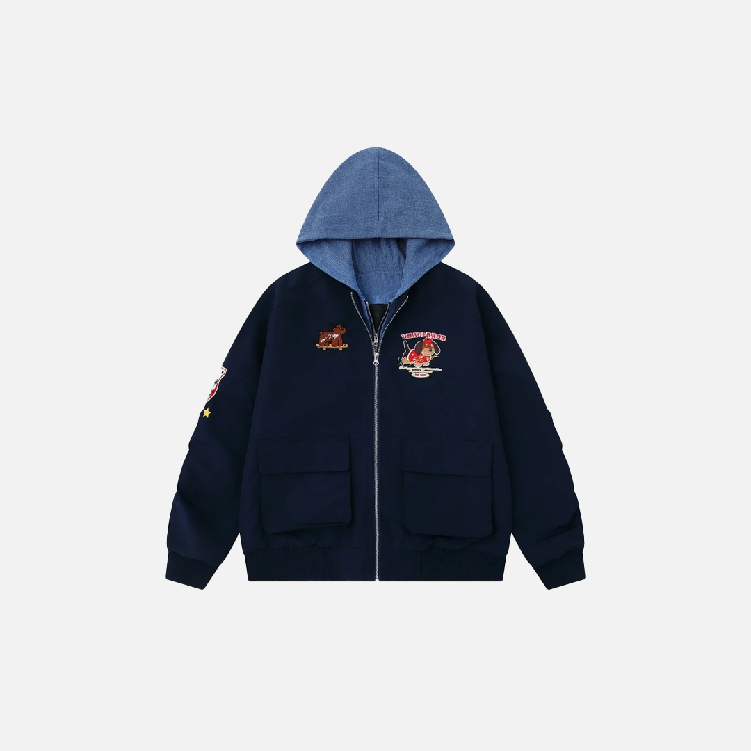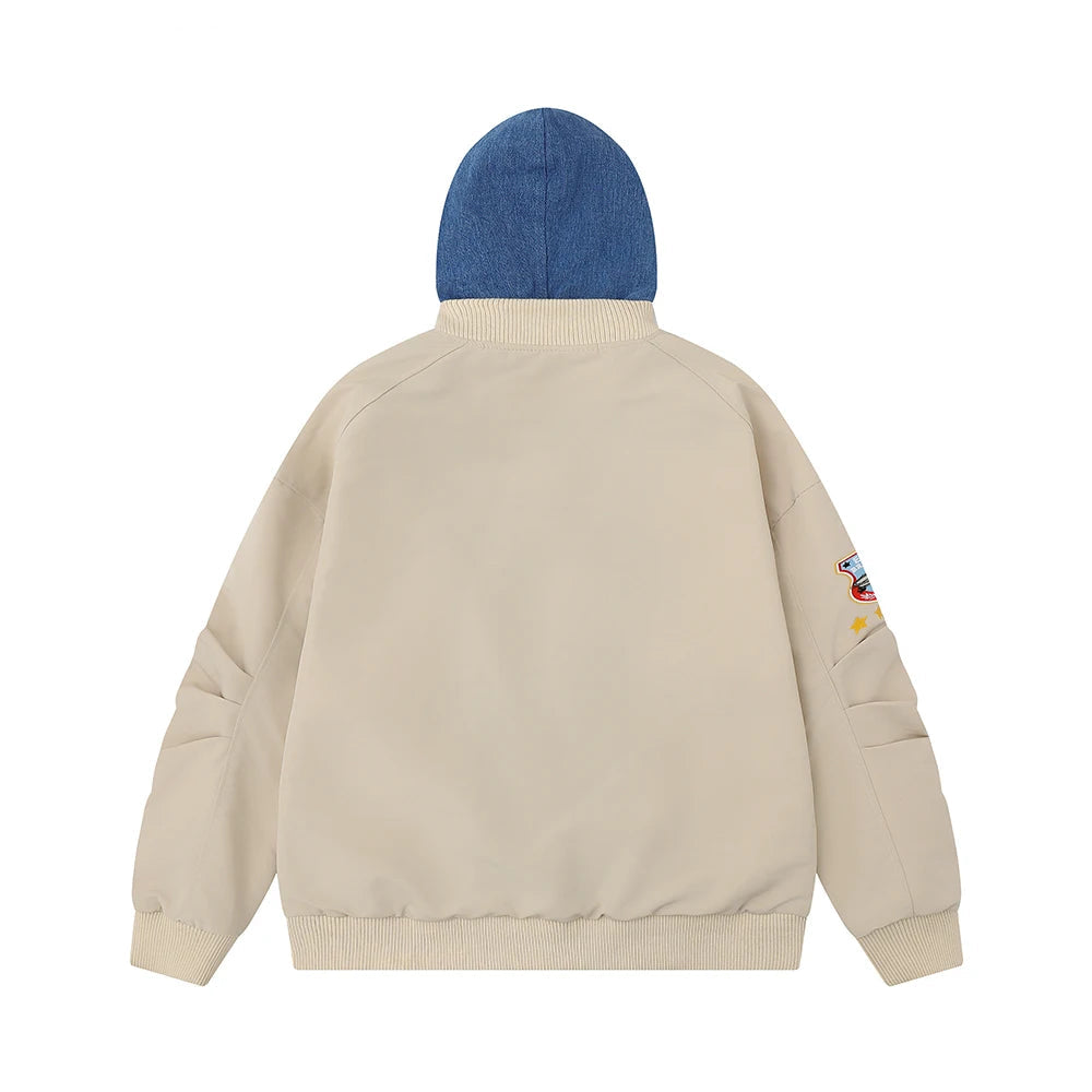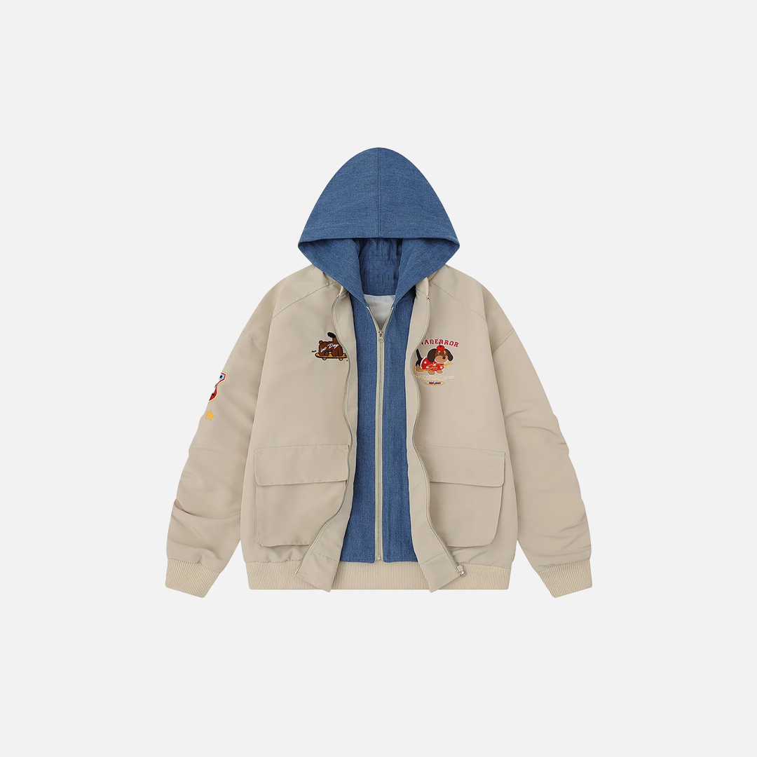 Retro Spliced Fake Two Piece Hooded Cargo Jacket
