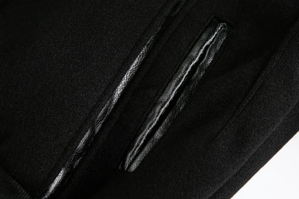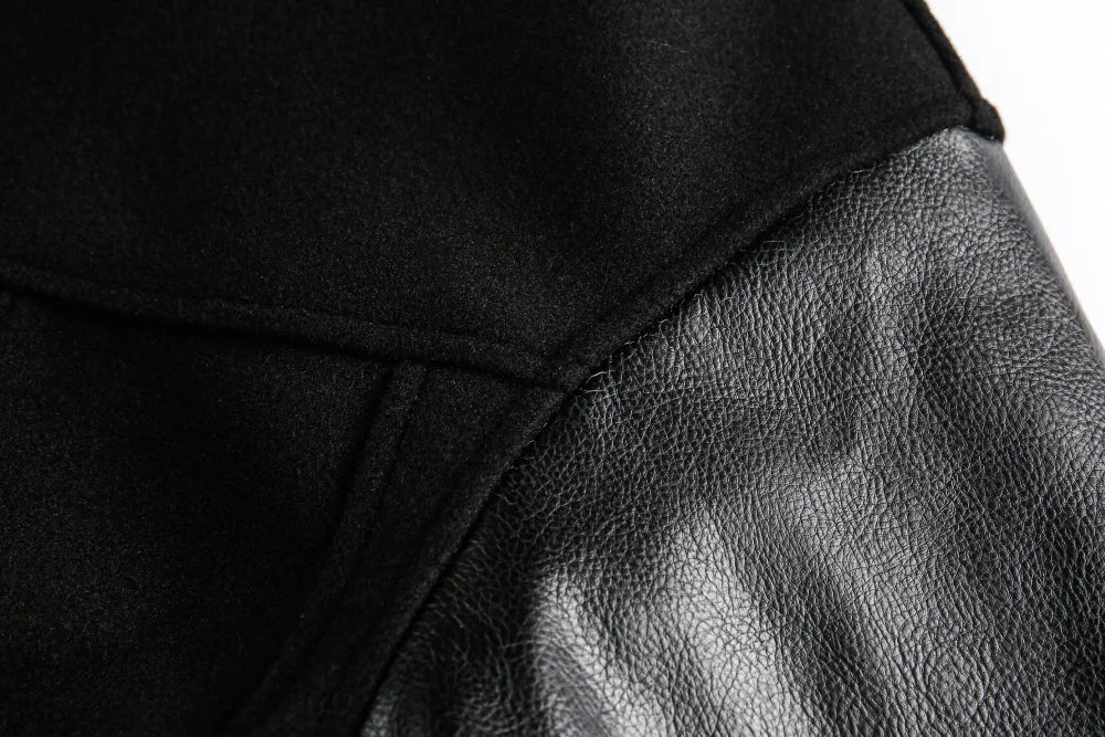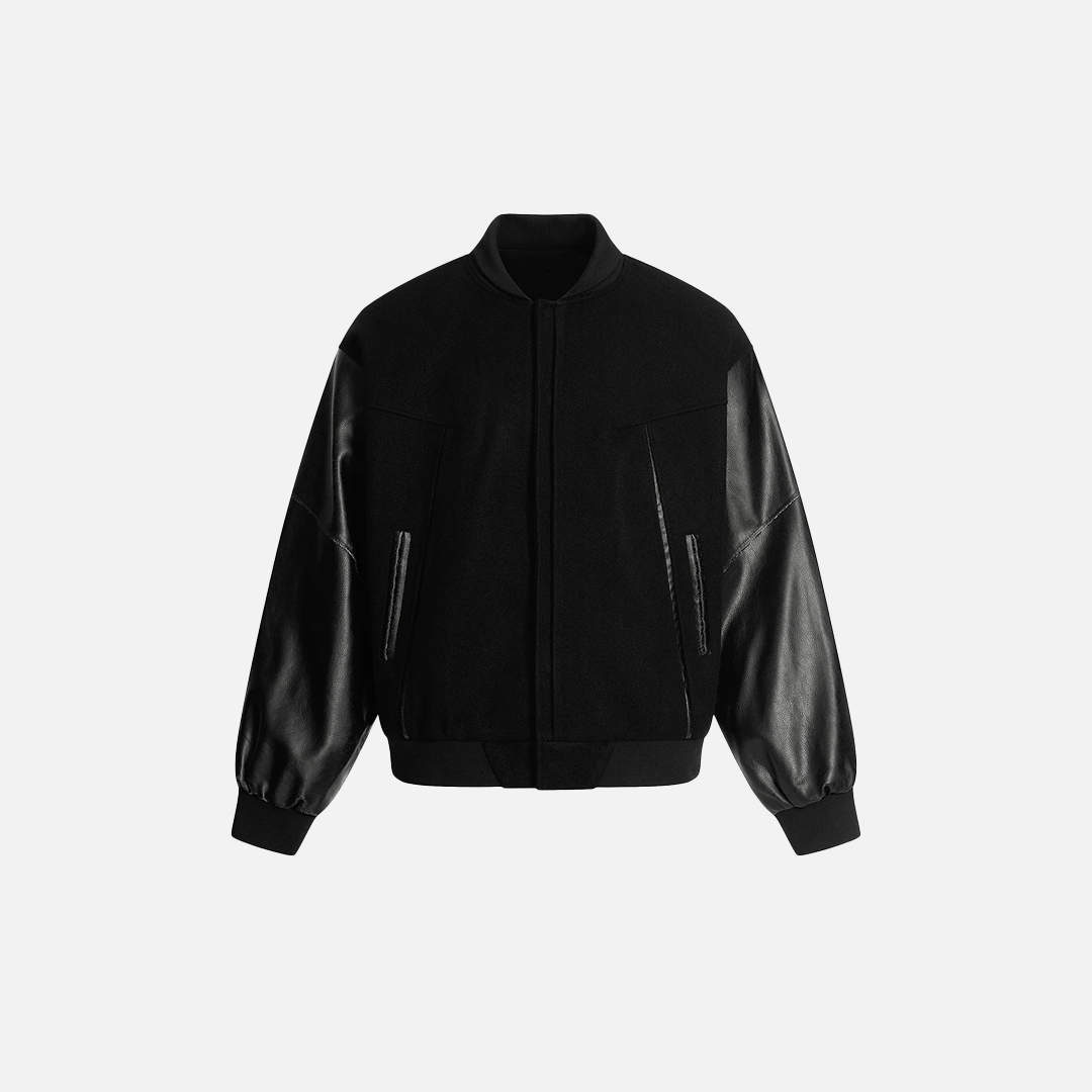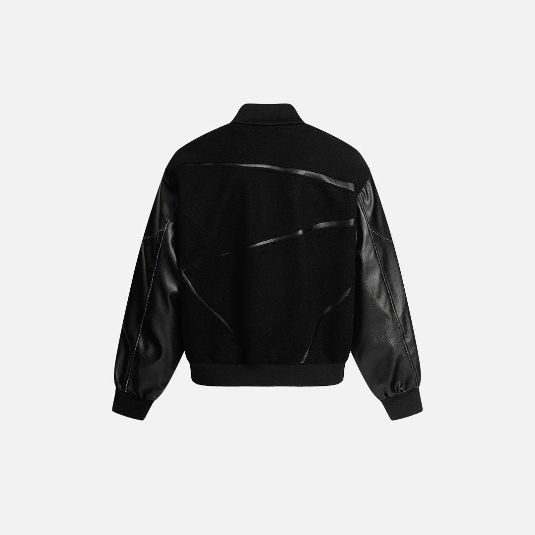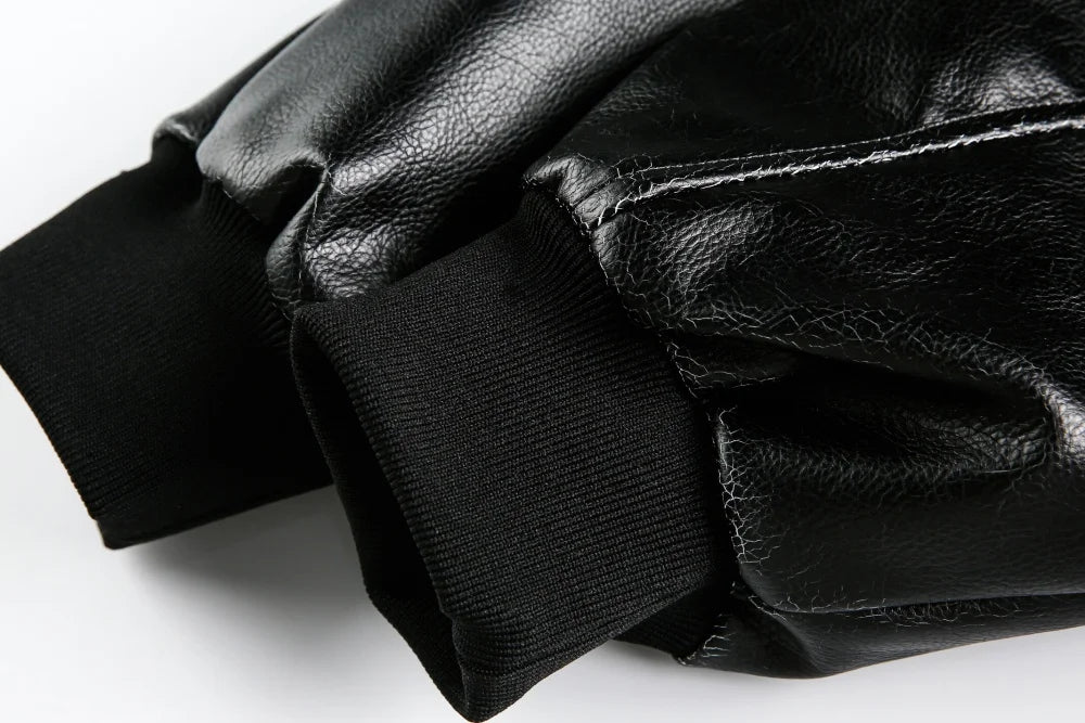 Spliced Retro PU Leather Baseball Varsity Jacket