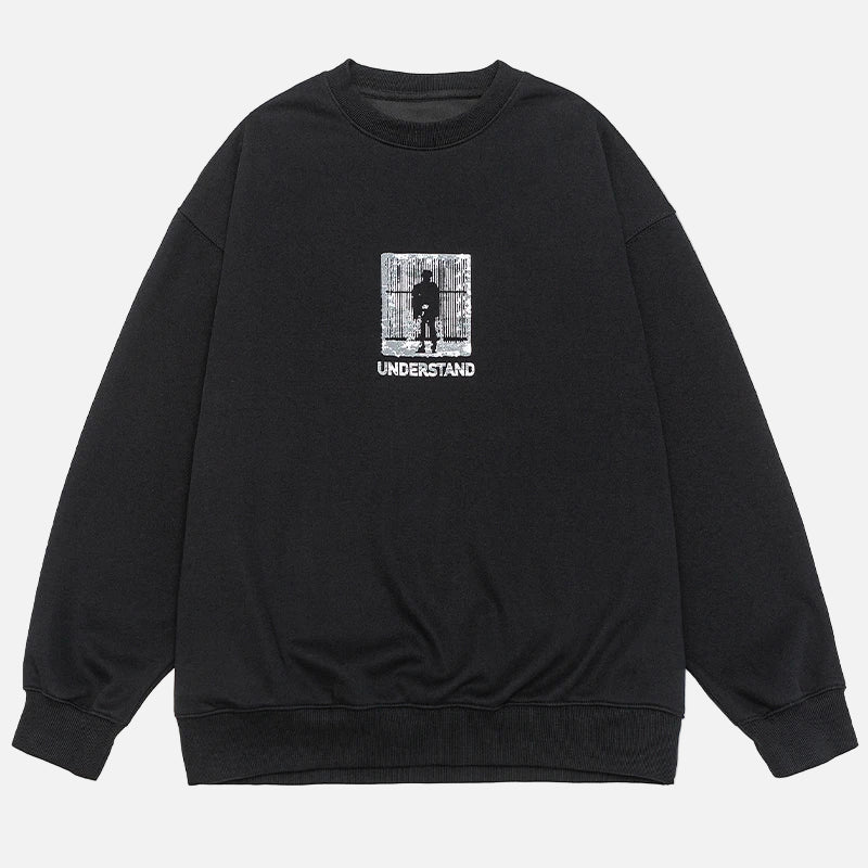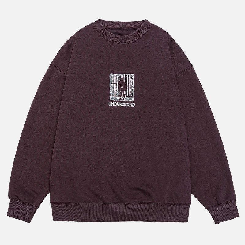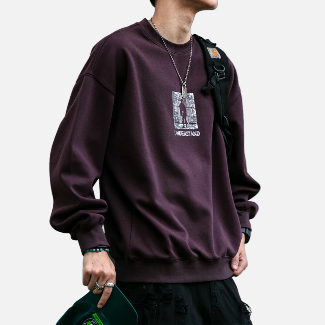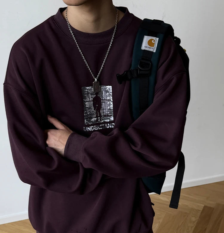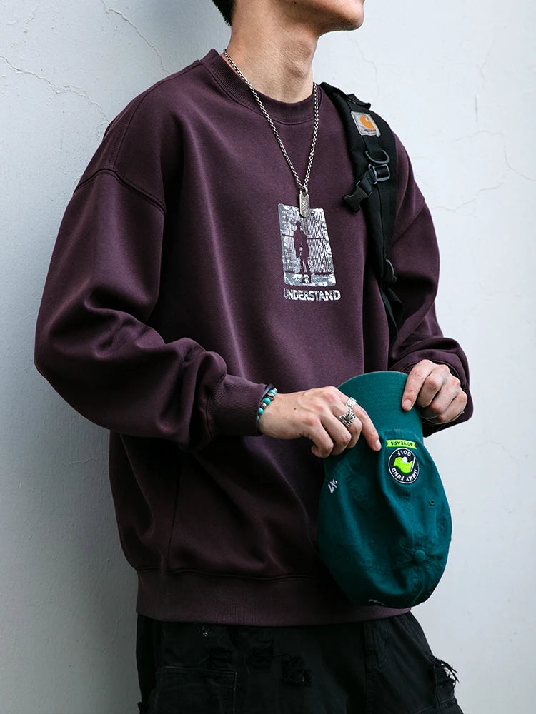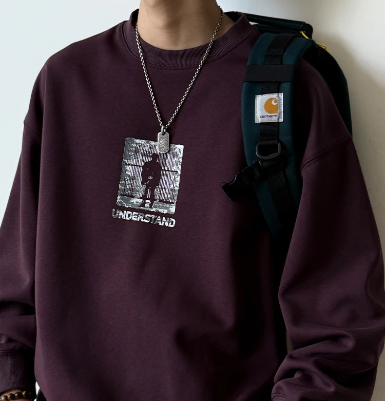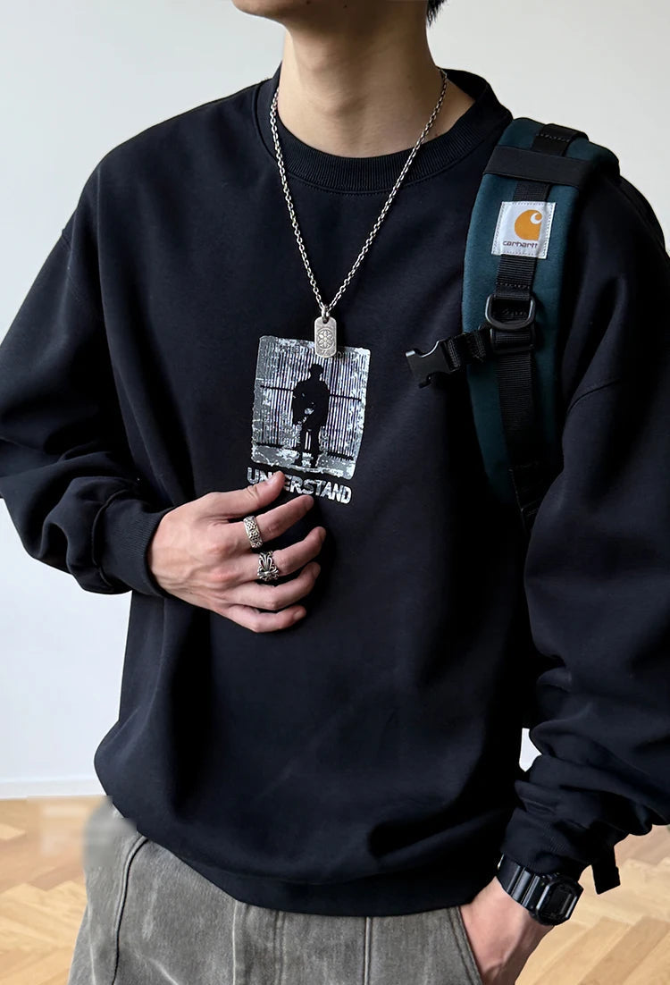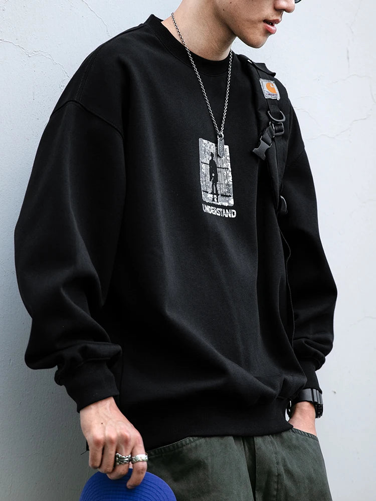 Versatile Loose Fit Round Neck Print Sweatshirt