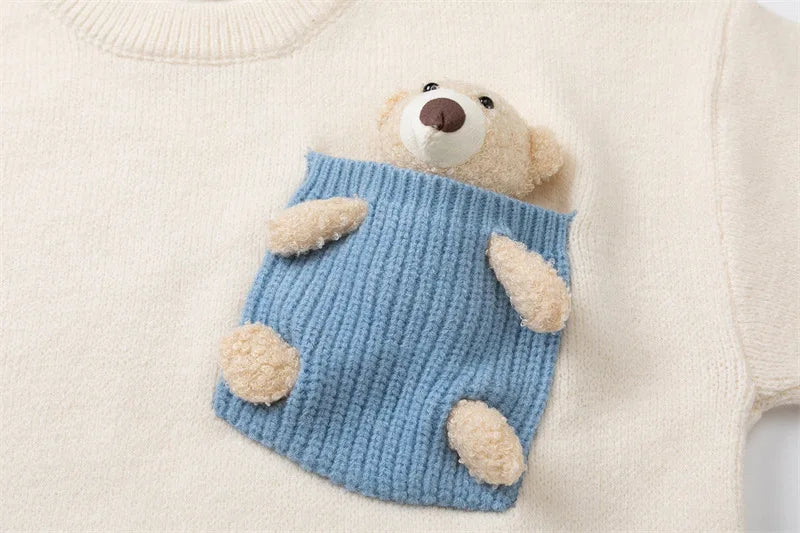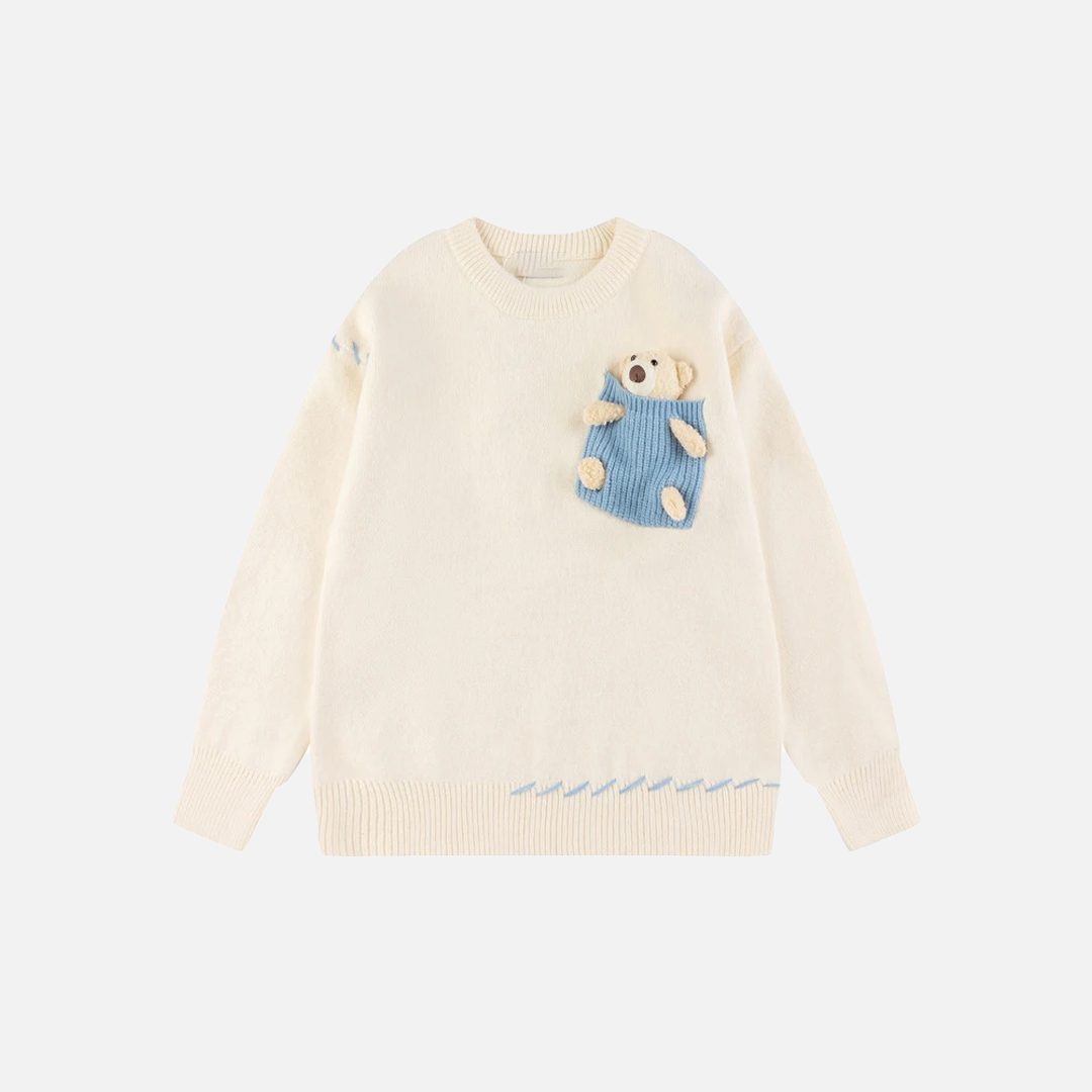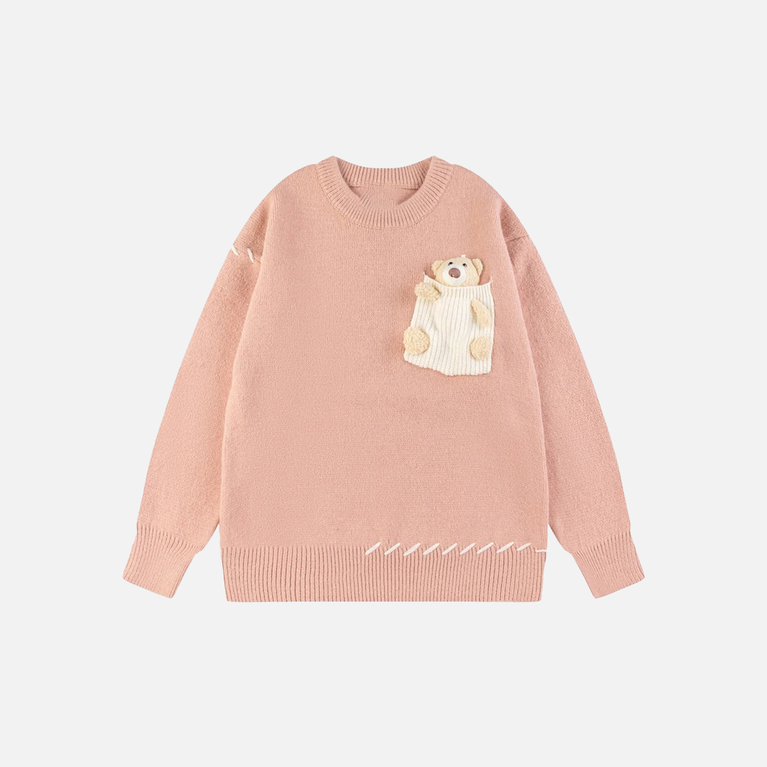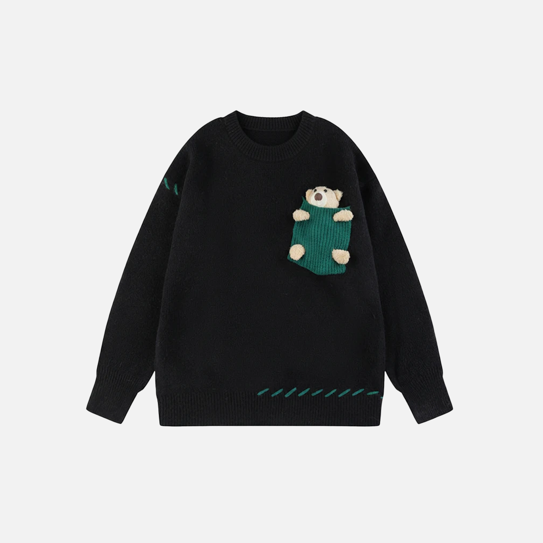 Y2K Cozy Bear Pocket Knitted Sweater
