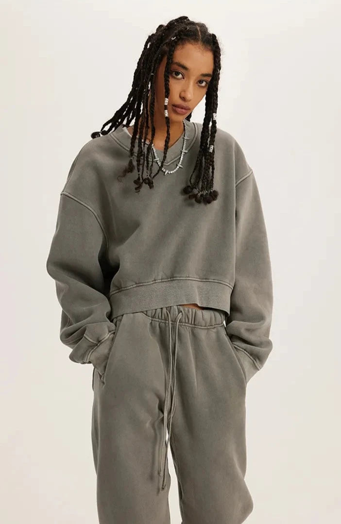 Crafted from a blend of soft cotton and durable polyester, this sweatshirt features a stylish V-neck and a solid pattern that will elevate any outfit!