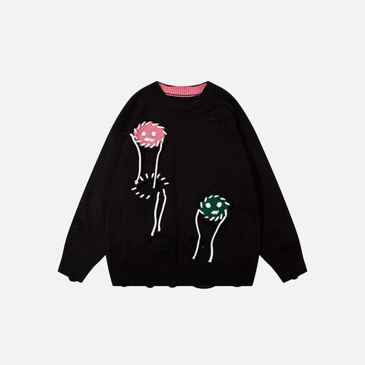Featuring a soft and durable acrylic blend, this Funny Faces Pattern Ripped Sweater offers cozy comfort with its O-neck collar and standard thickness.