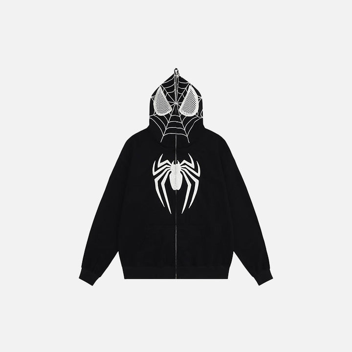 Invest in Y2K style and comfort with this premium Hooded Zip-Up Spider Mask Hoodie, crafted from a superior blend of Cotton and Terylene. Envelop yourself in lavish depending and imagine the iconic looks you'll create.