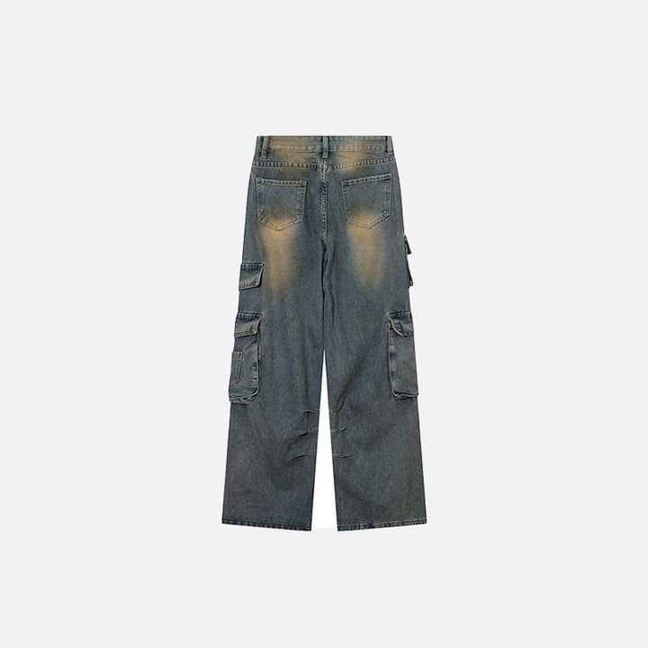 Feel the comfort and style of these Wide-leg Multi Pocket Cargo Jeans! Crafted from high-quality Polyester and Cotton, these jeans make a bold statement.