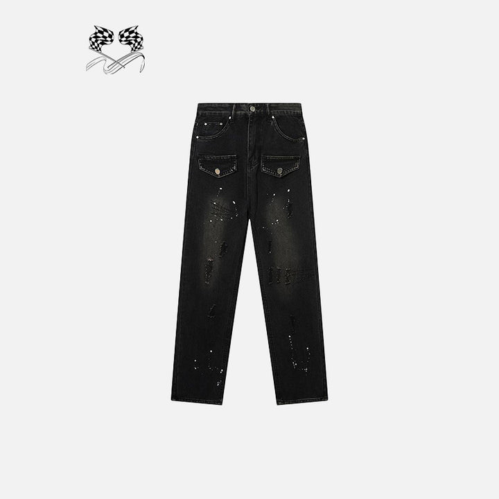 Discover the perfect blend of comfort and style with these Ripped Ink Splashed Denim Jeans. Crafted from luxurious polyester and cotton for superior breathability and an effortless fit, they're the perfect choice for an everyday look that stands out from the crowd!