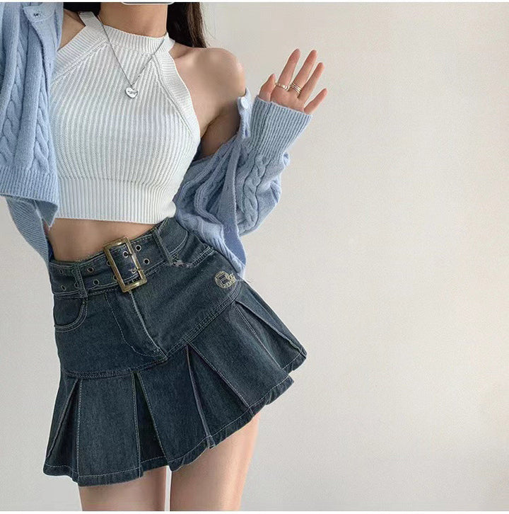 Y2K Denim High Waist Belted Skirt