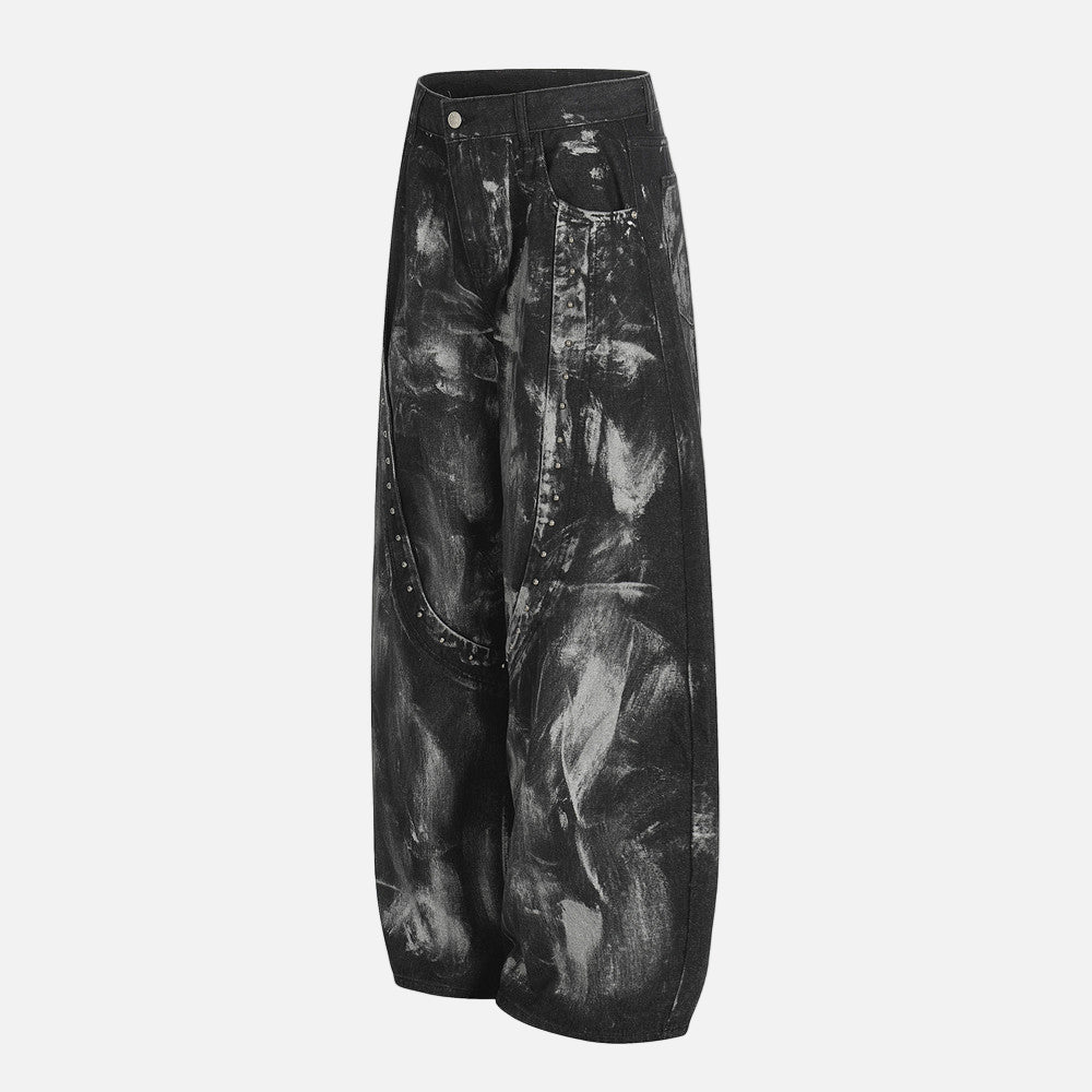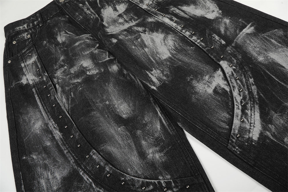 Ink Splatter Painted Heavy-Duty Punk Denim Jeans