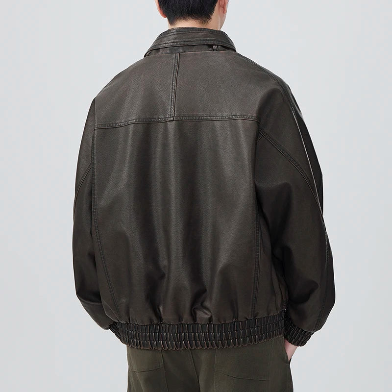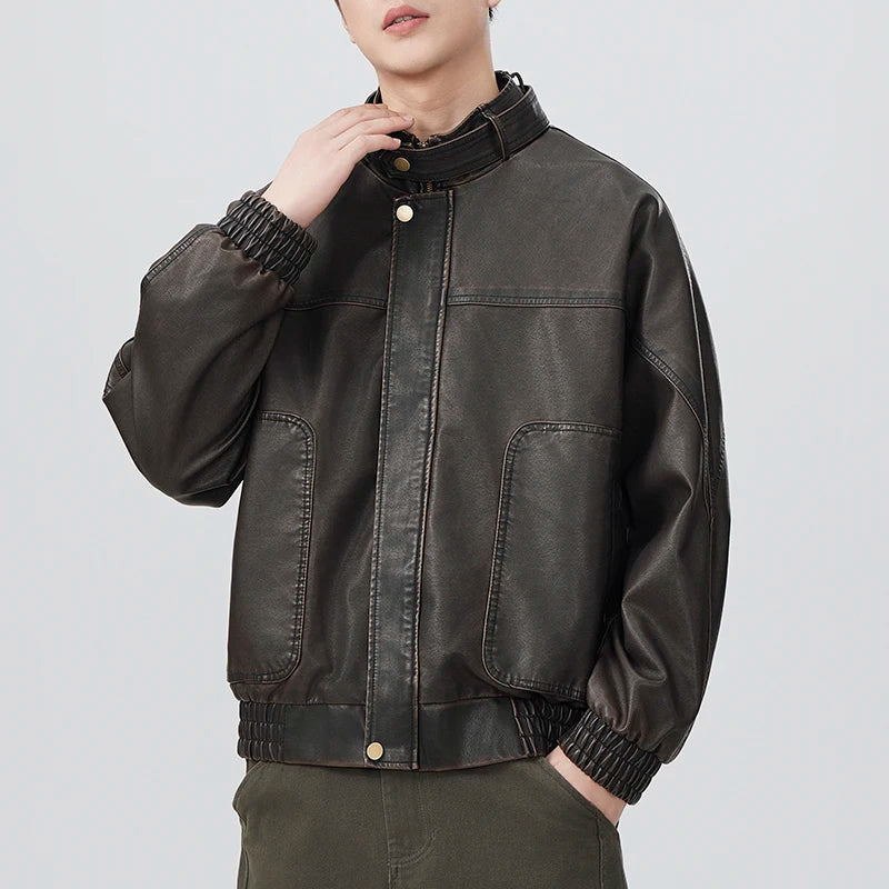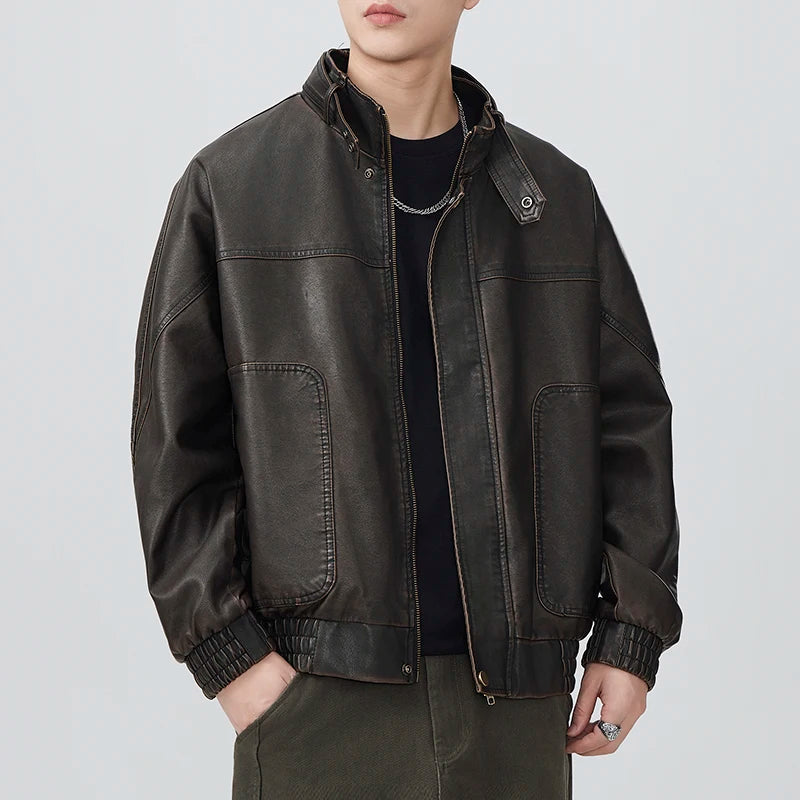 Men Vintage Japanese Style Motorcycle Leather Jacket