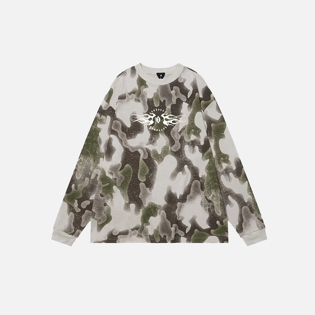 Vintage Camouflage Printed Long Sleeve T-Shirt