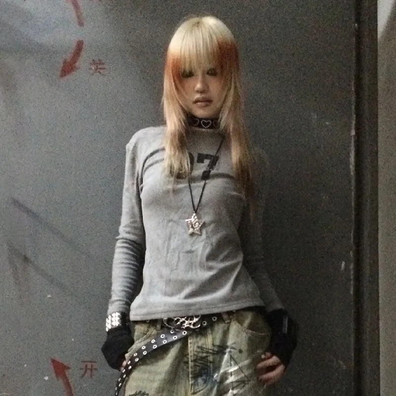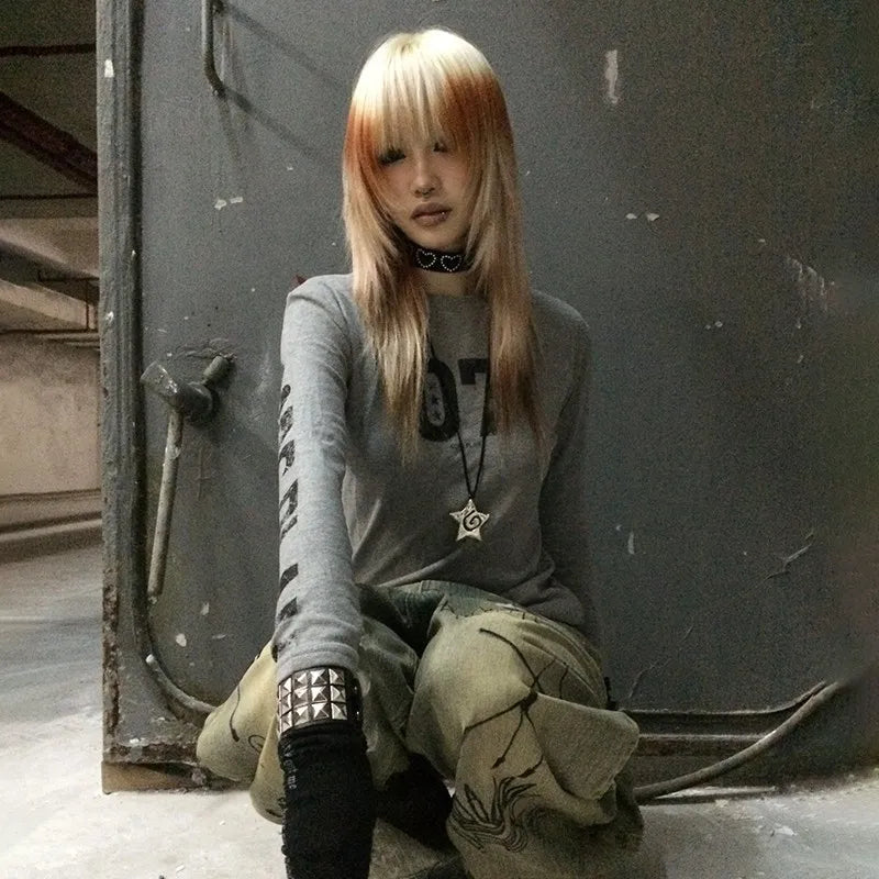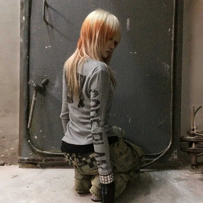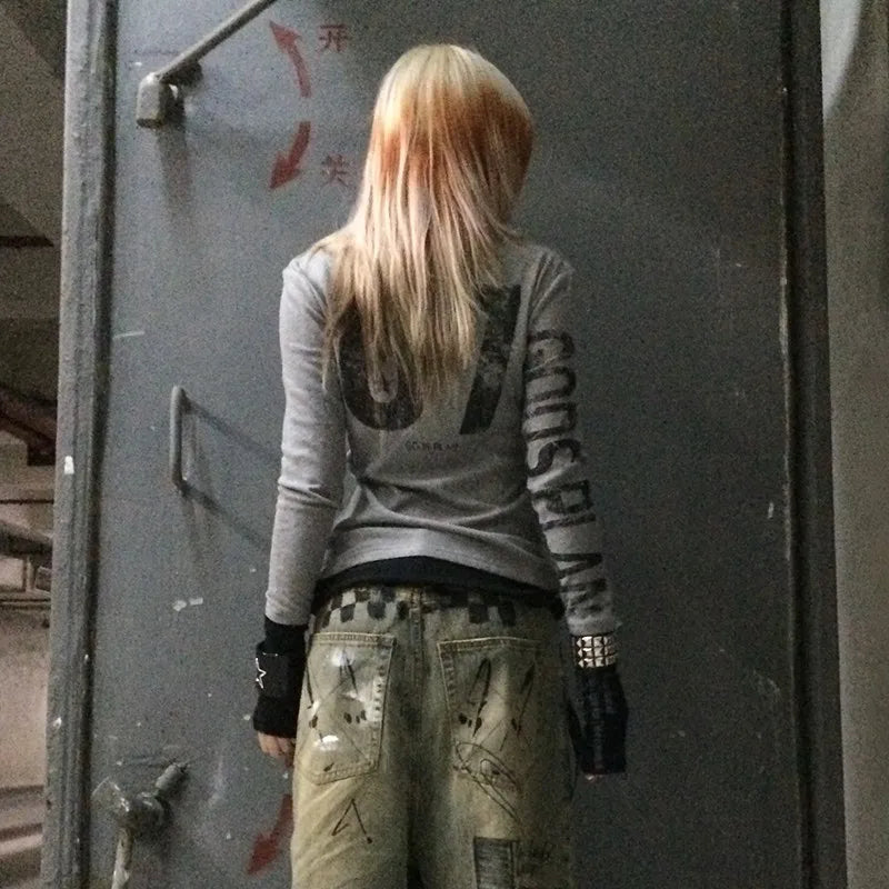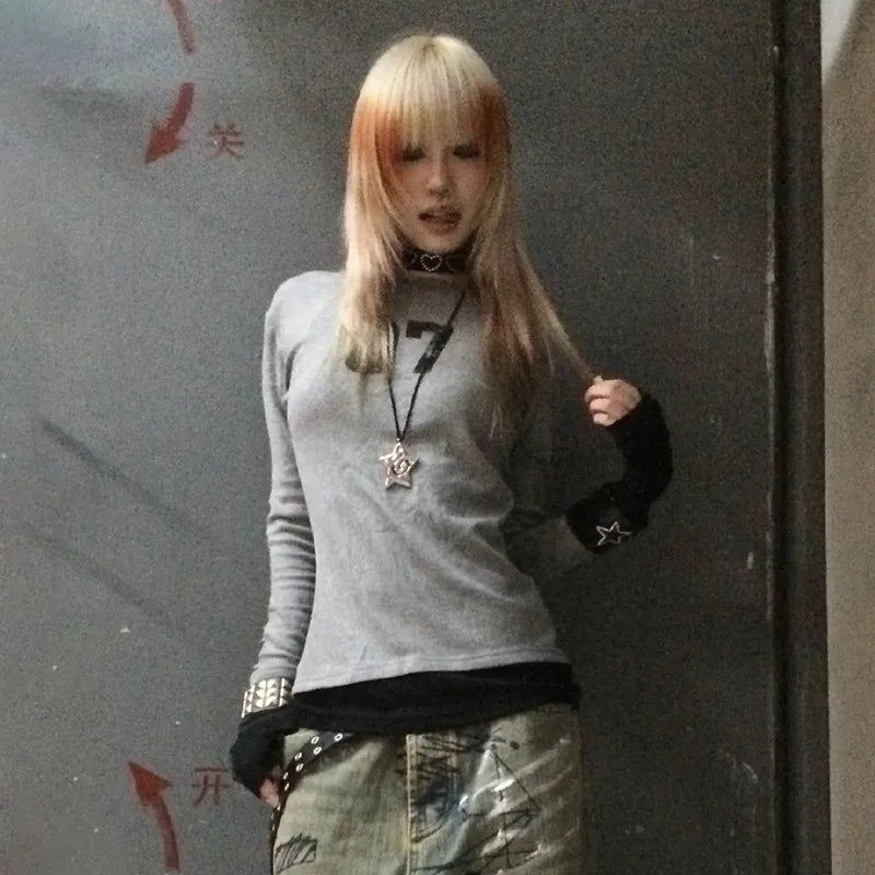 Gothic Vintage Number Print Patchwork T-Shirt