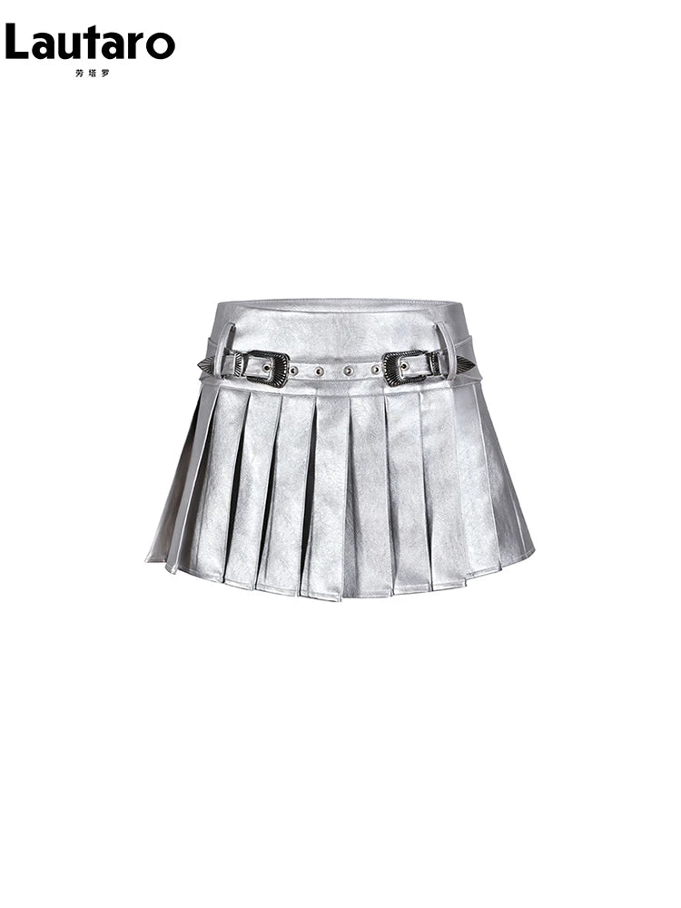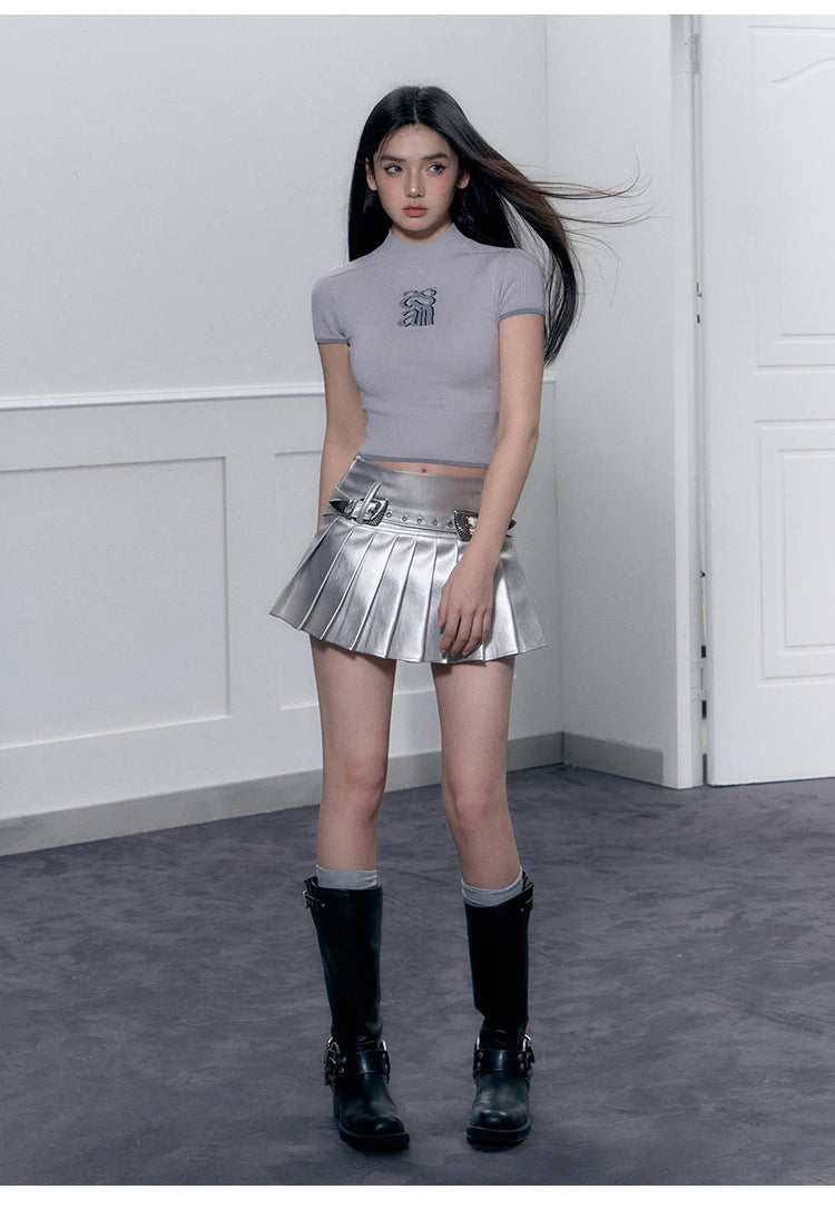 Y2K High Waist Silver Leather Mini Skirt