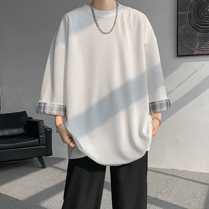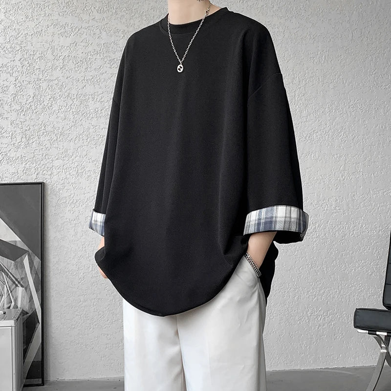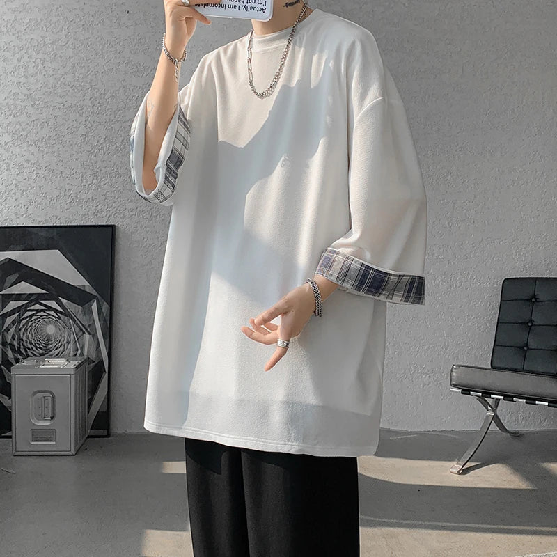 Cool Oversized Plaid Korean Style T-Shirt