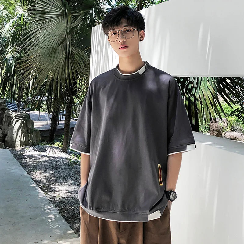 Summer Oversized Fake Two Piece Cotton T-Shirt