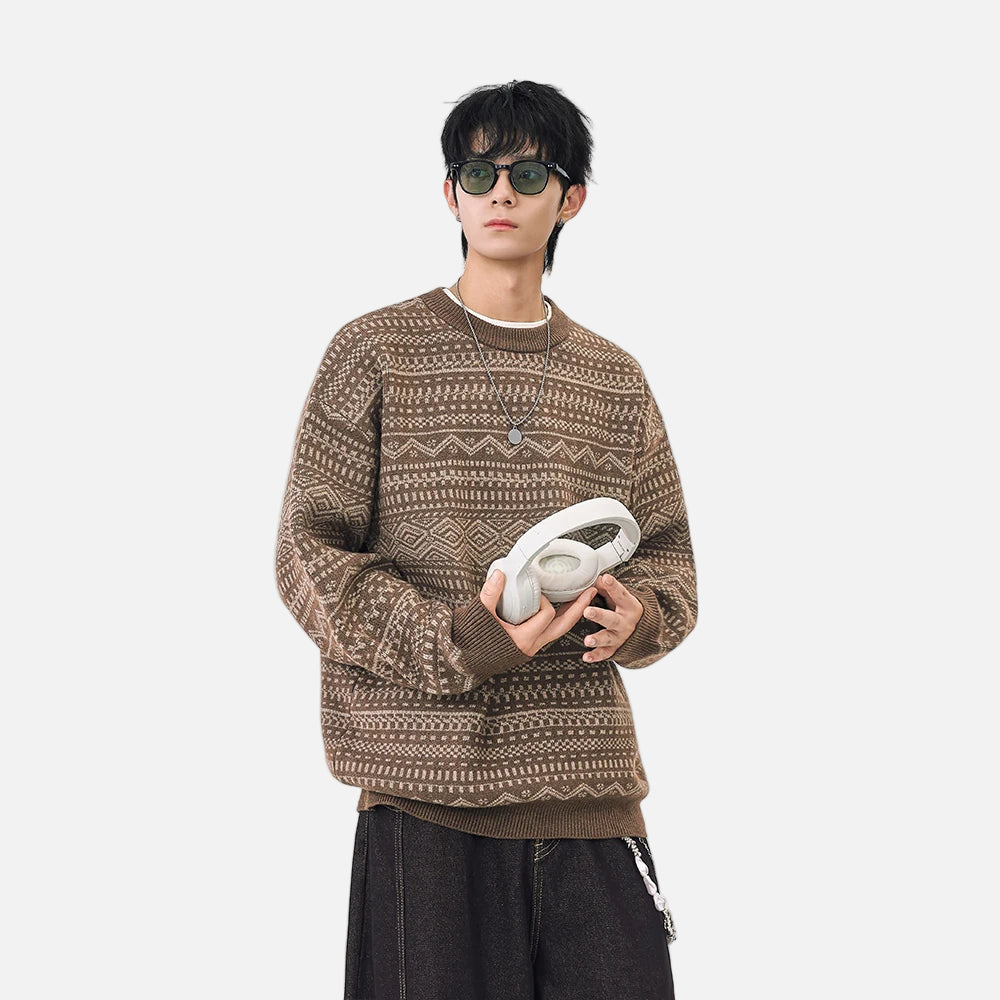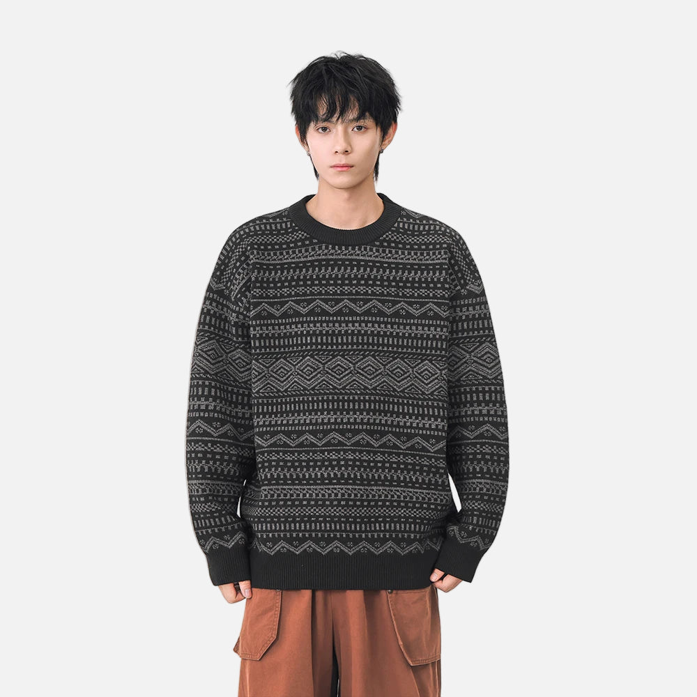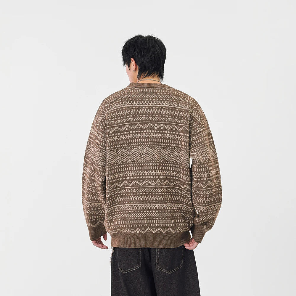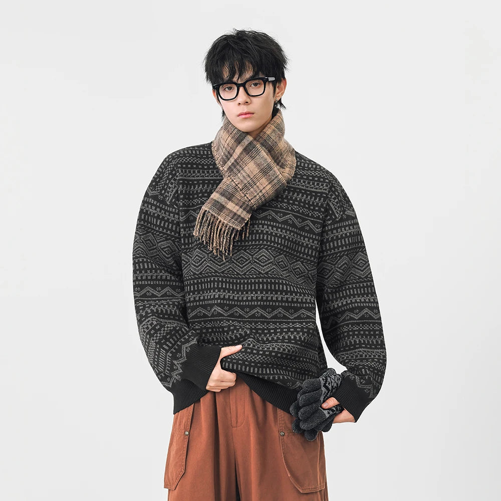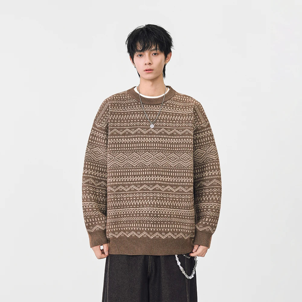Y2K Plush Ethnic Knit Crew Neck Sweater