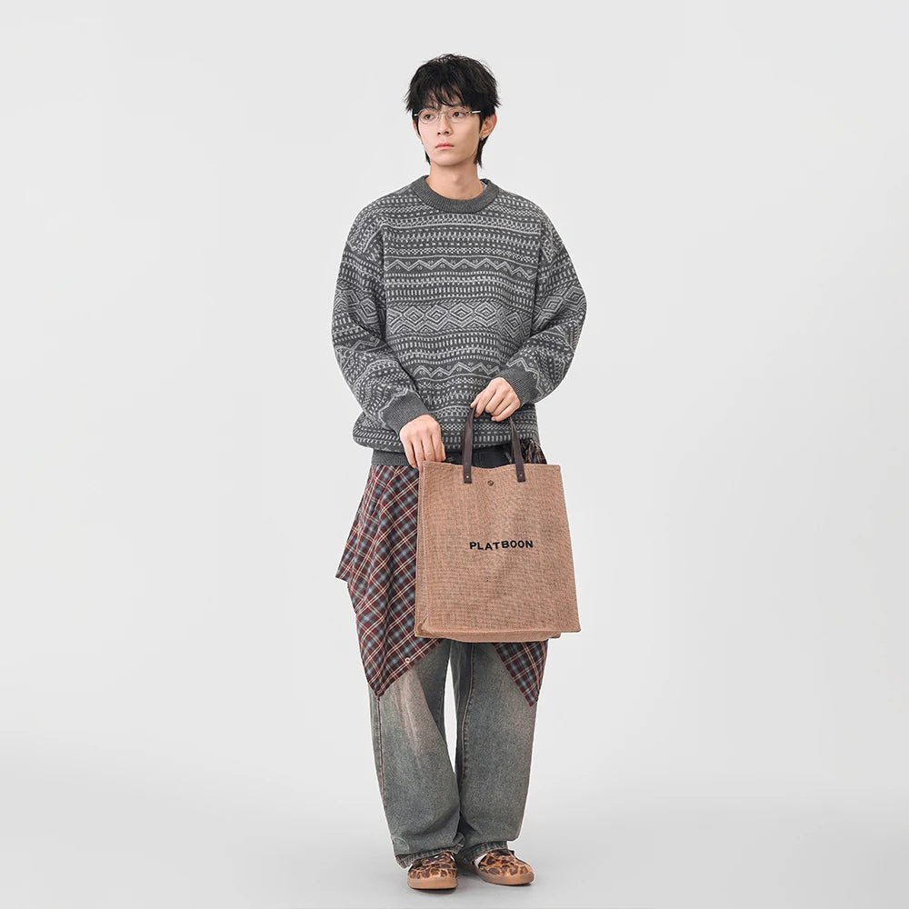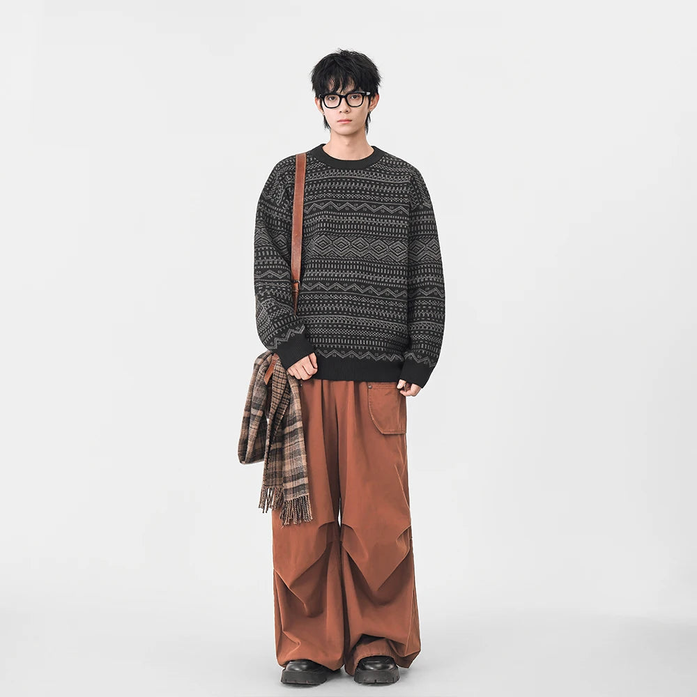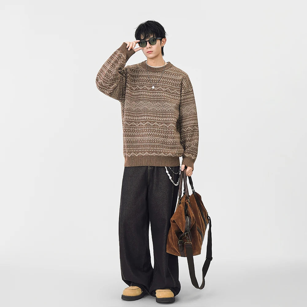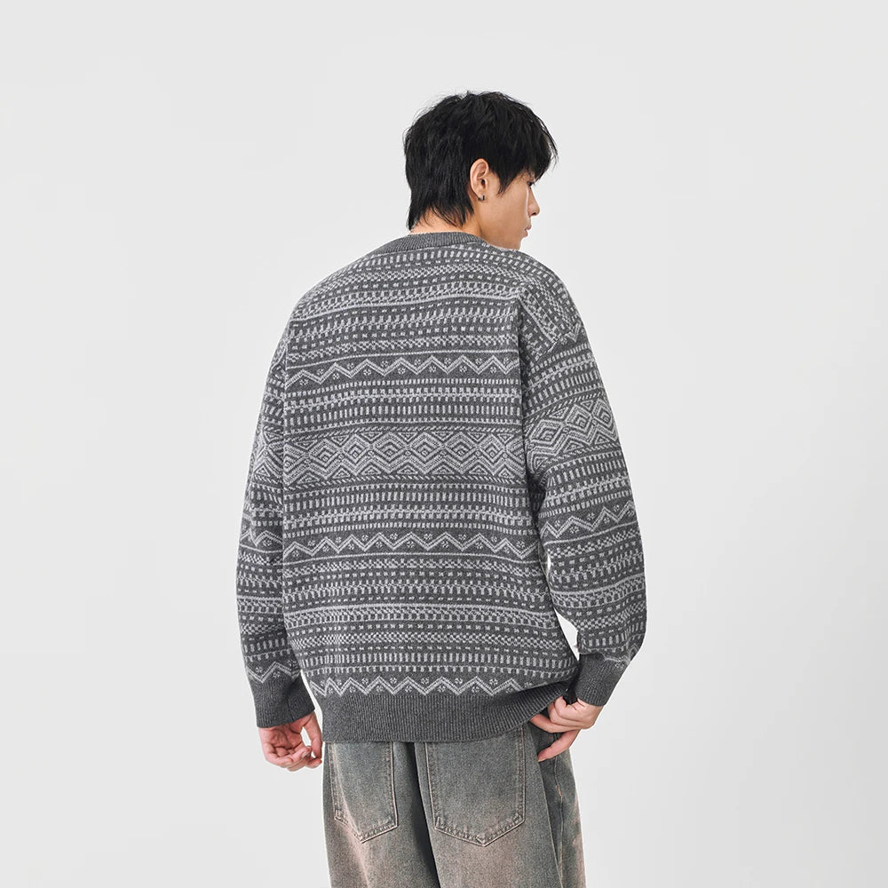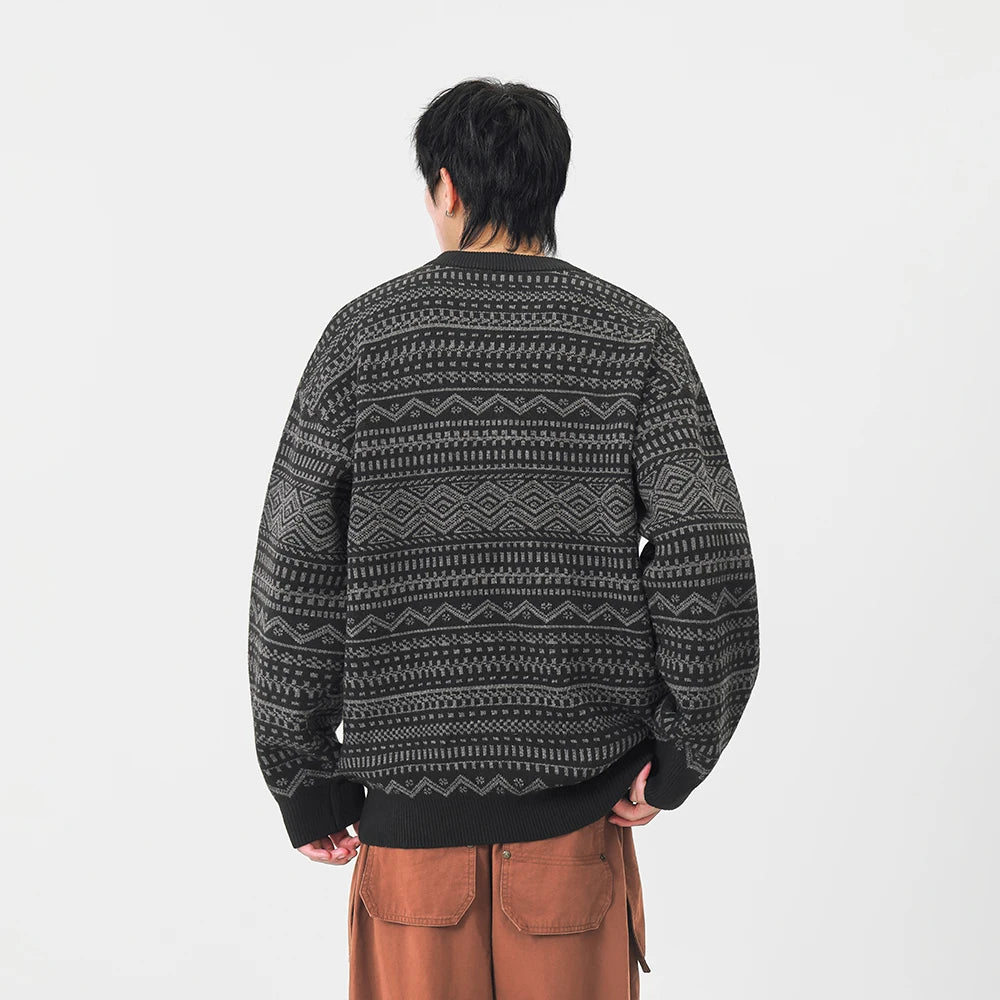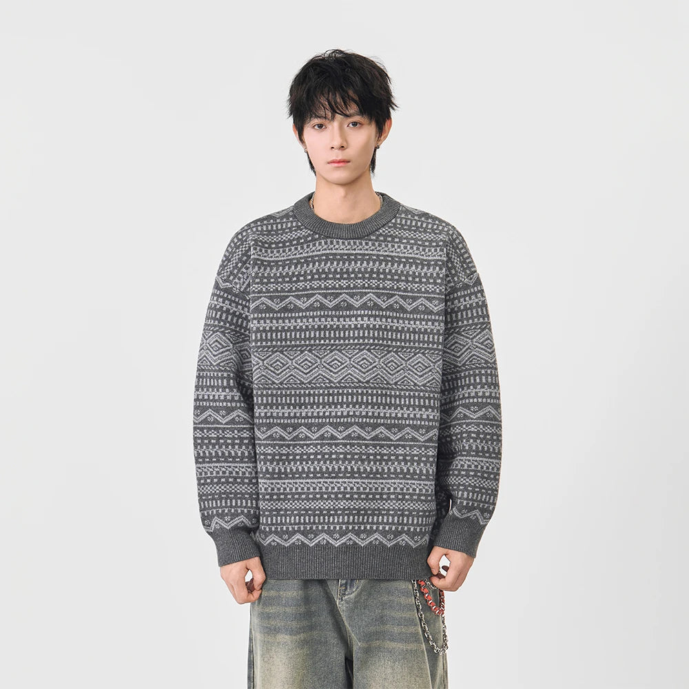Y2K Plush Ethnic Knit Crew Neck Sweater