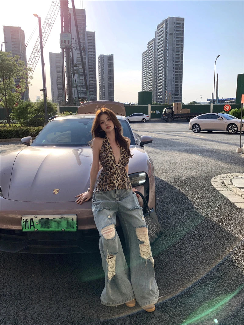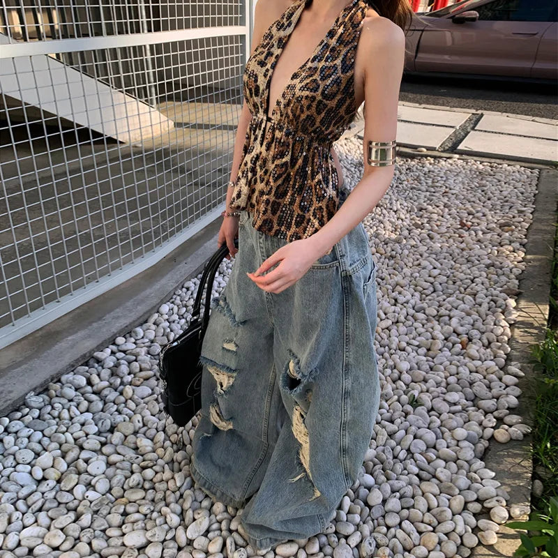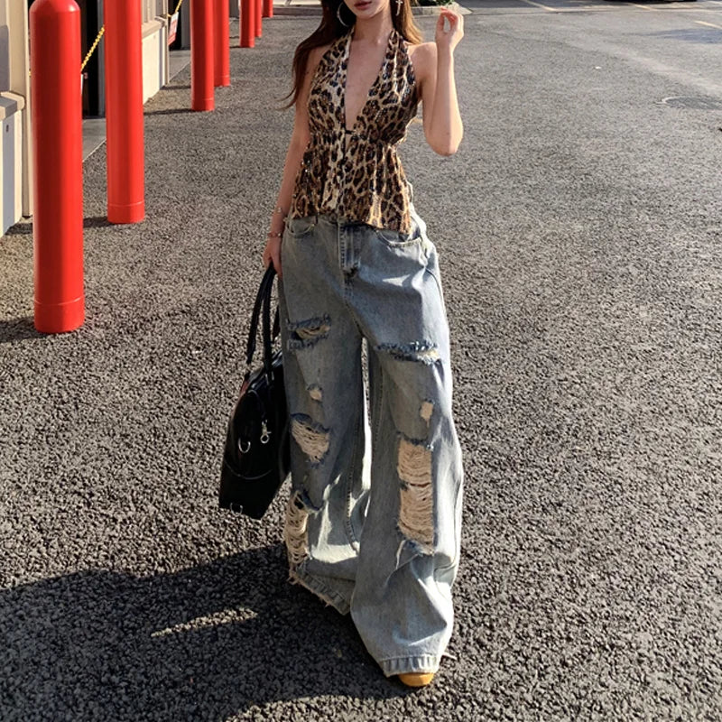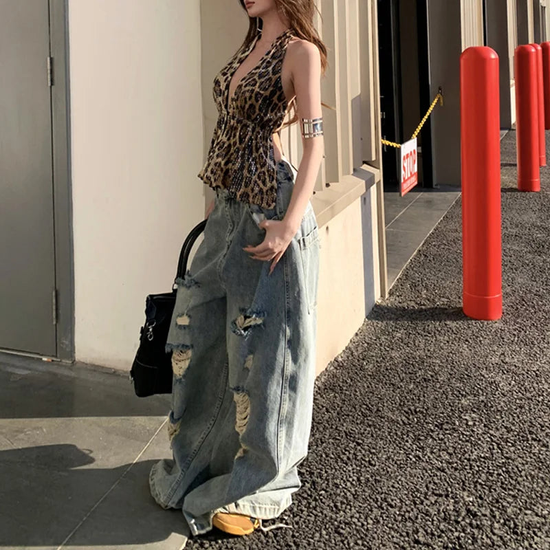 Vaqueros de cintura alta, holgados, rotos y elásticos adaptables