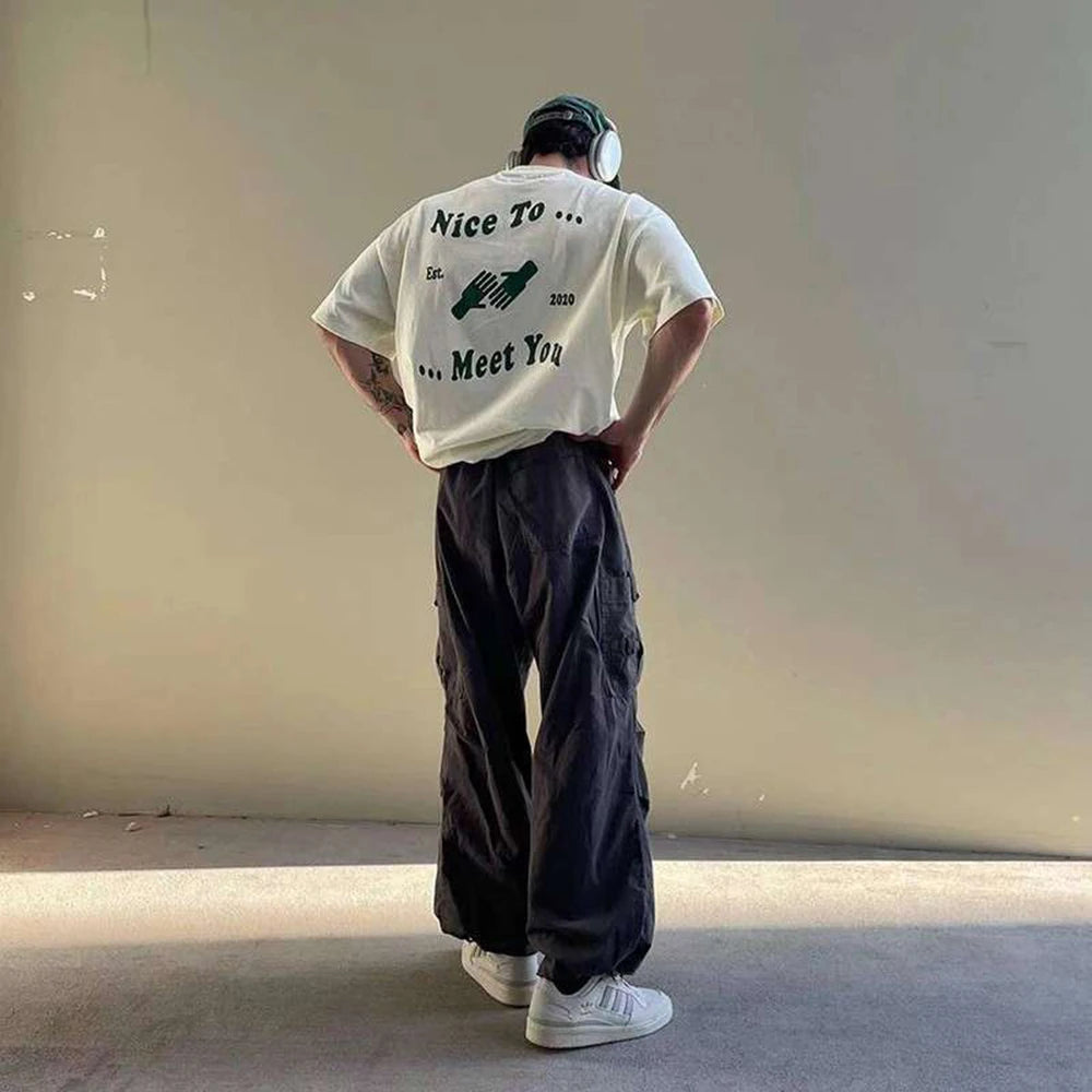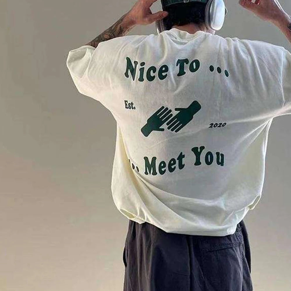 Camiseta holgada con estampado de letras retro ajustable