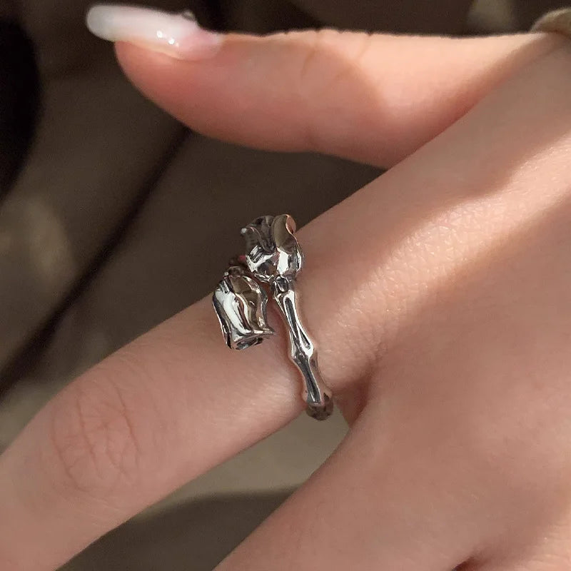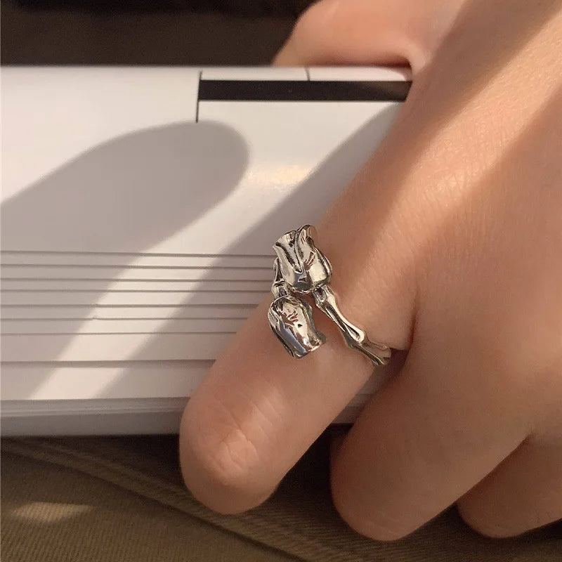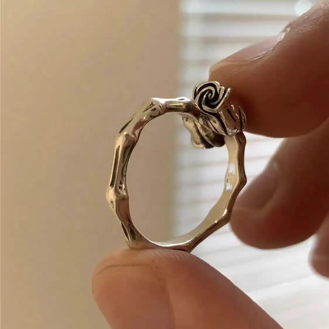Adjustable Retro Rose Bud Cool Open Ring