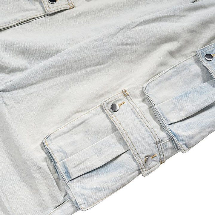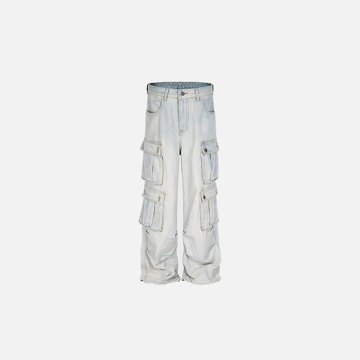 Pantalón cargo de color azul claro, perfecto para el verano. Suelto para lograr un equilibrio entre ajuste y comodidad.