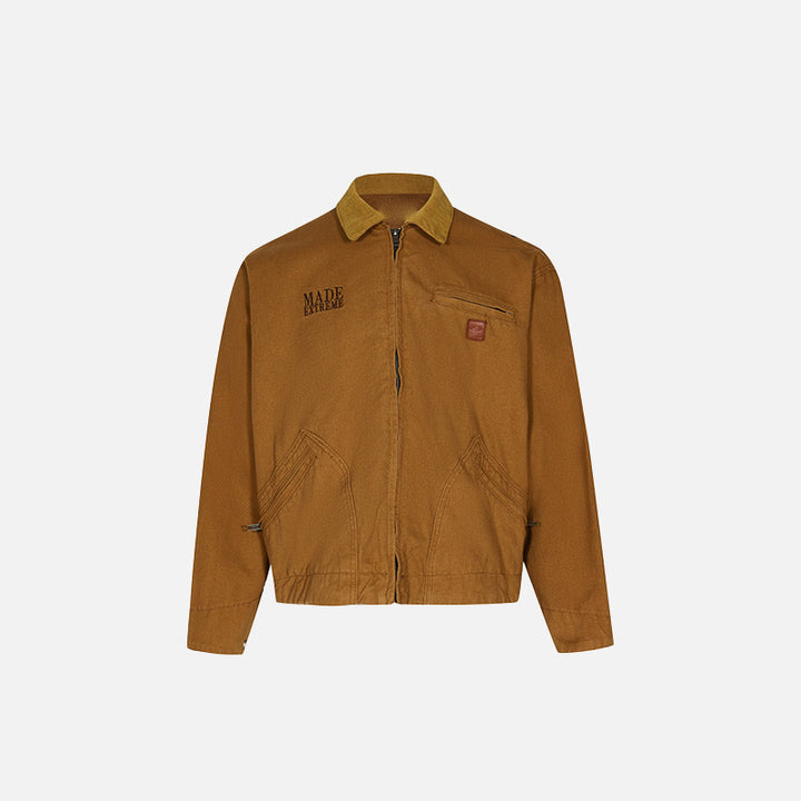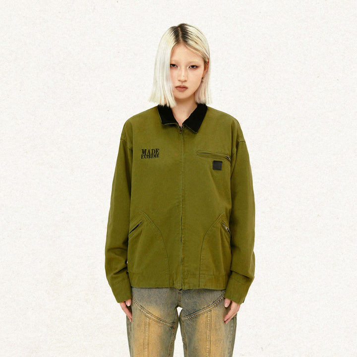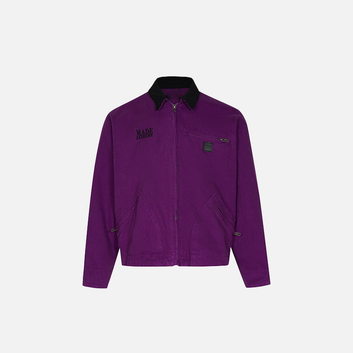 Confeccionada con algodón de alta calidad y con un elegante cuello vuelto, esta chaqueta irradia encanto y versatilidad atemporales.