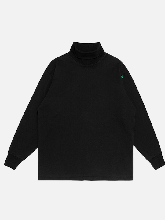 DETALLES patrón sólido Hecho de algodón cuello alto Corte holgado De punto