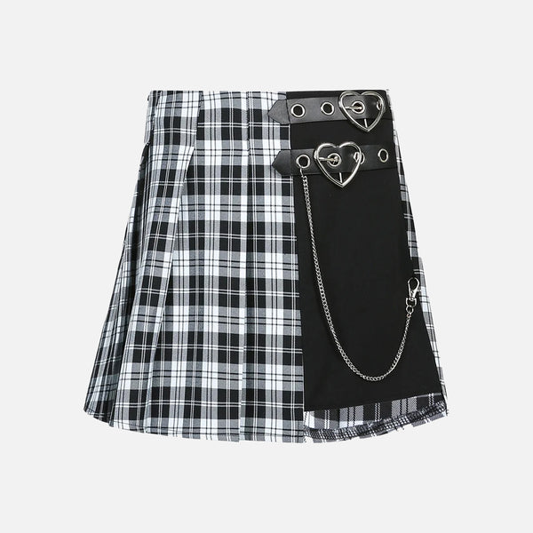 Falda irregular con cadena y hebilla de corazón a cuadros