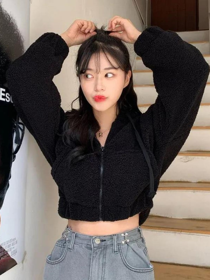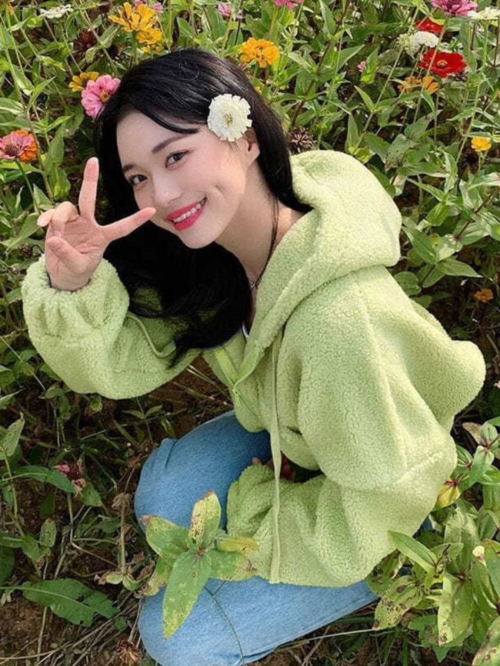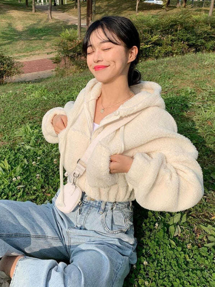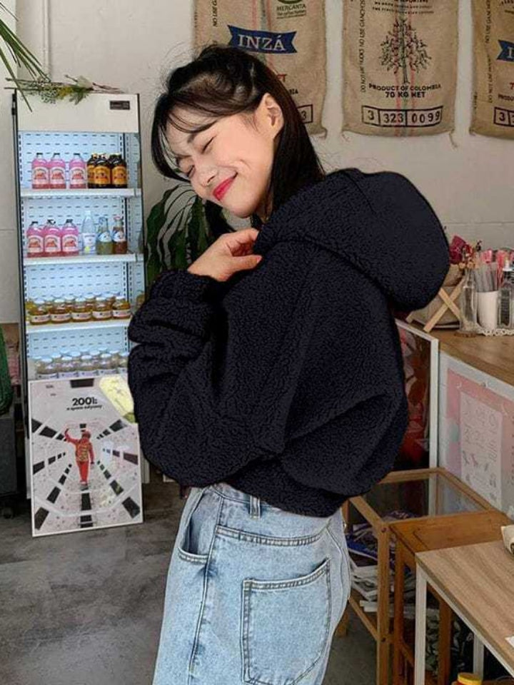 Sudadera con capucha y cremallera de lana de cordero