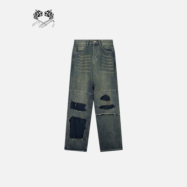 ¡Descubre los jeans retro patchwork rotos! Confeccionadas con algodón moderno, estas prendas de mezclilla aportan un estilo y comodidad excepcionales a cualquier guardarropa.