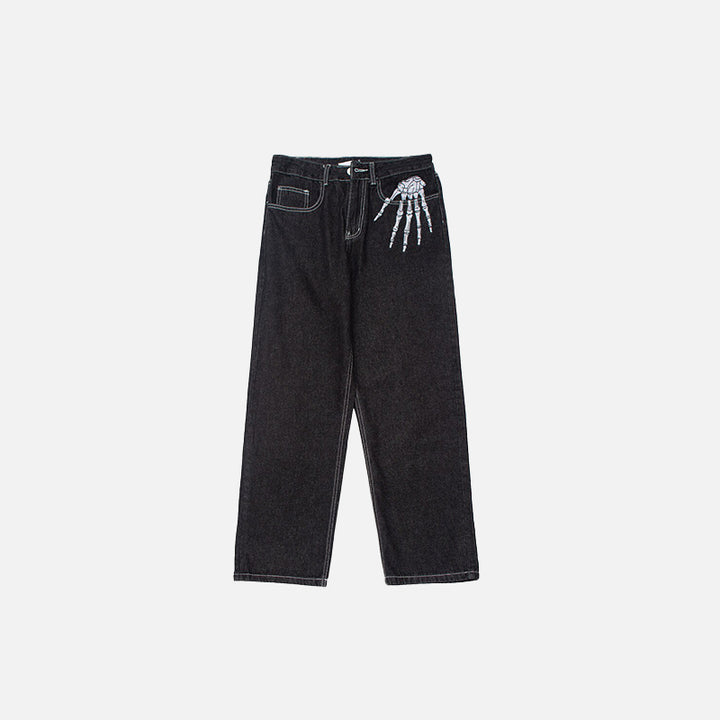 Pantalones de mezclilla con bordado a mano de esqueleto