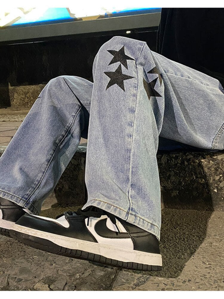Pantalones vaqueros extragrandes con estampado de estrellas