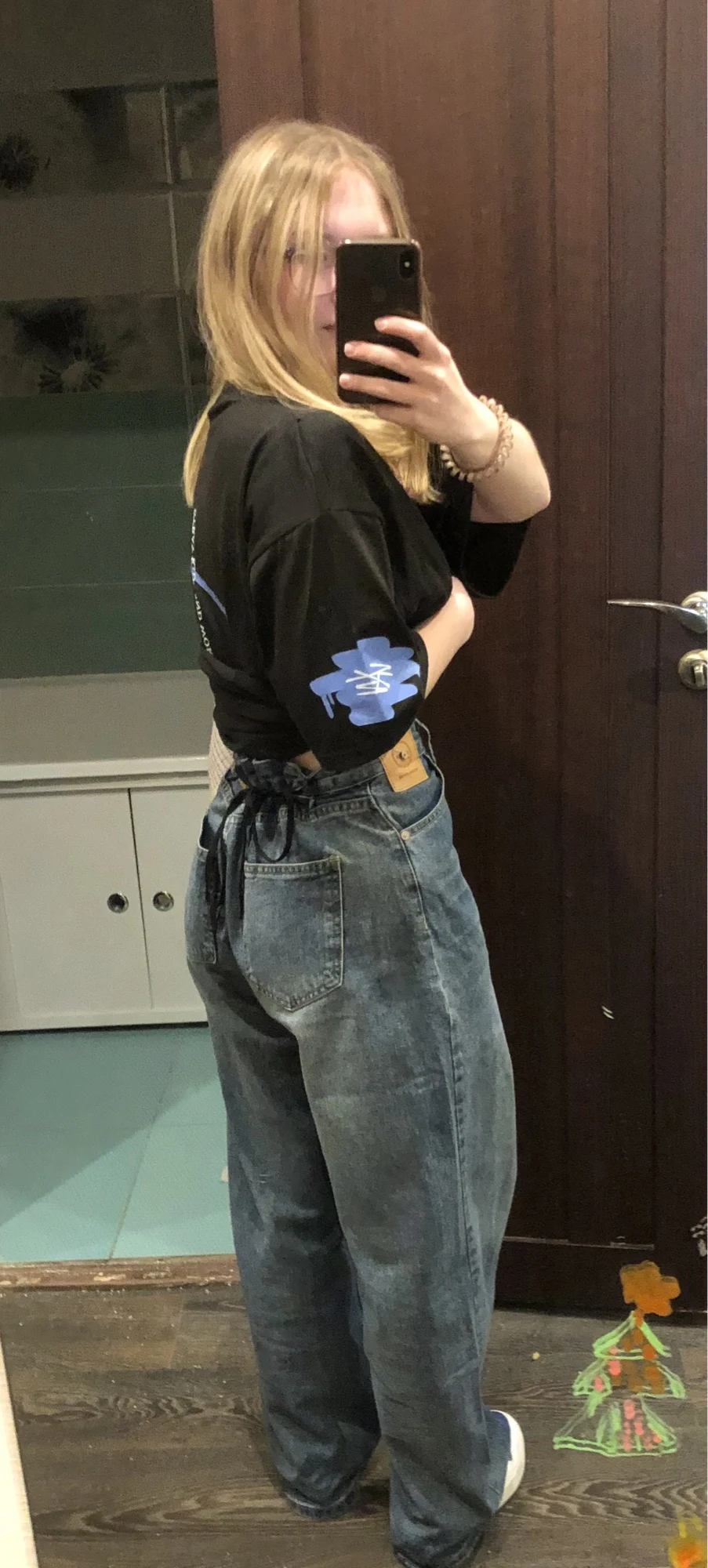 I took L so that they were wide, but I was afraid to take XL, given my height😅If I wear on a high waist, then I tie at the waist with a lace from sneakers and norms👌🏻Low down is also not bad, but they collect all the dirt on the floor🥲They are gorgeous, I was looking for a retro likeness, like the Pinterest women of Koros and they are perfect for me🤌🏻🥹