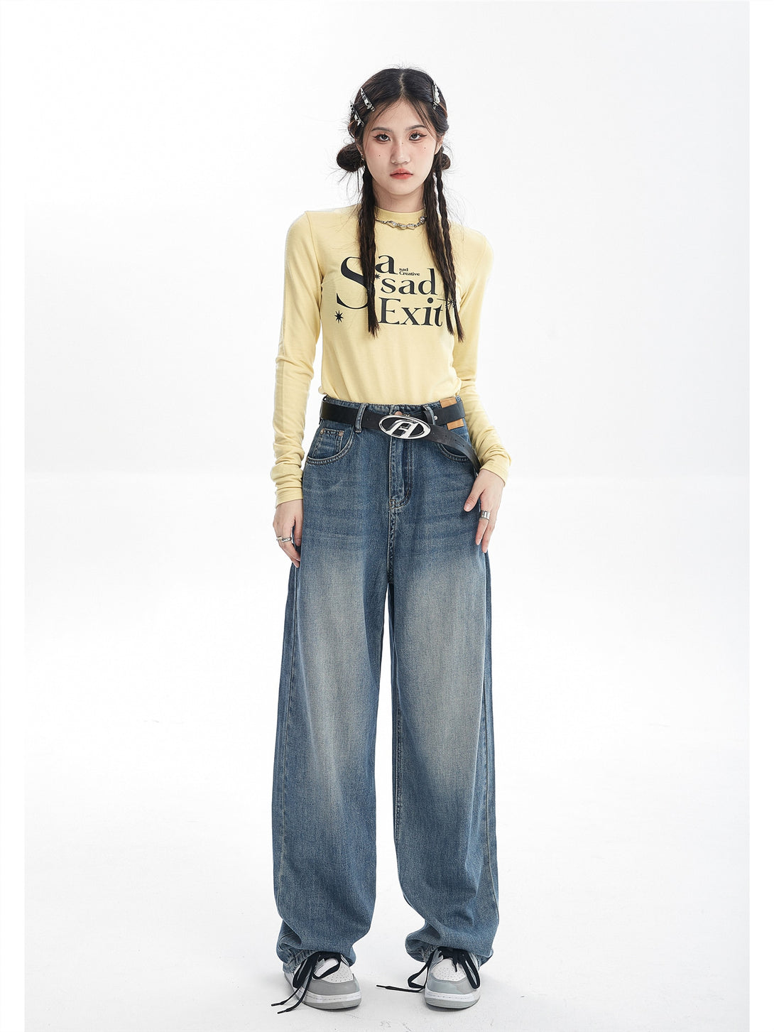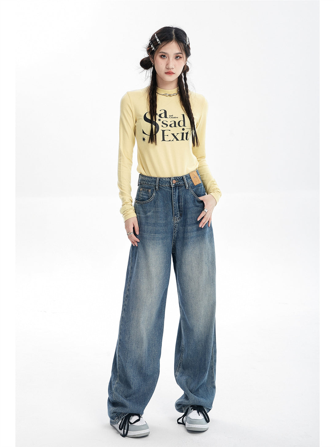 Confeccionados con el mejor algodón disponible, nuestros Vintage Blue Baggy Jeans cuentan con una elegante bragueta con cremallera y una cintura alta que seguramente agregará un toque de elegancia a cualquier atuendo.