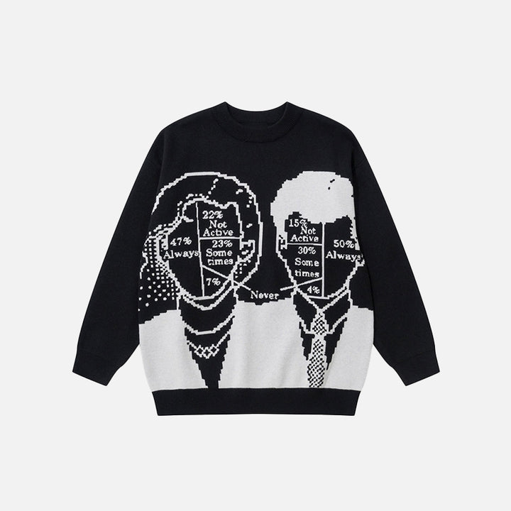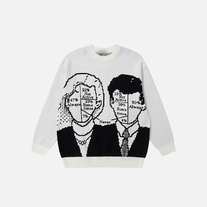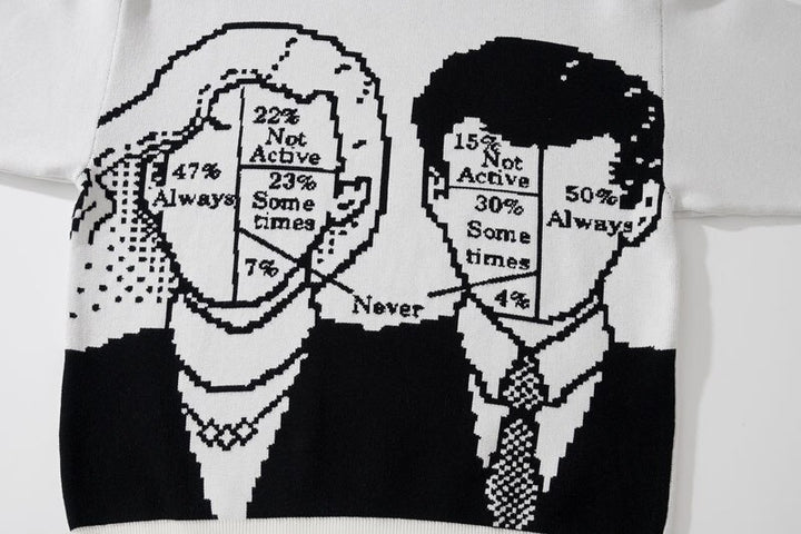 ¡Adornate con este suéter gráfico de punto Y2K! Confeccionado en poliéster y acrílico, cuenta con un cuello redondo y lana estándar para una calidez superior. Además, su patrón abstracto está tejido por computadora por expertos para brindar detalles sobresalientes.