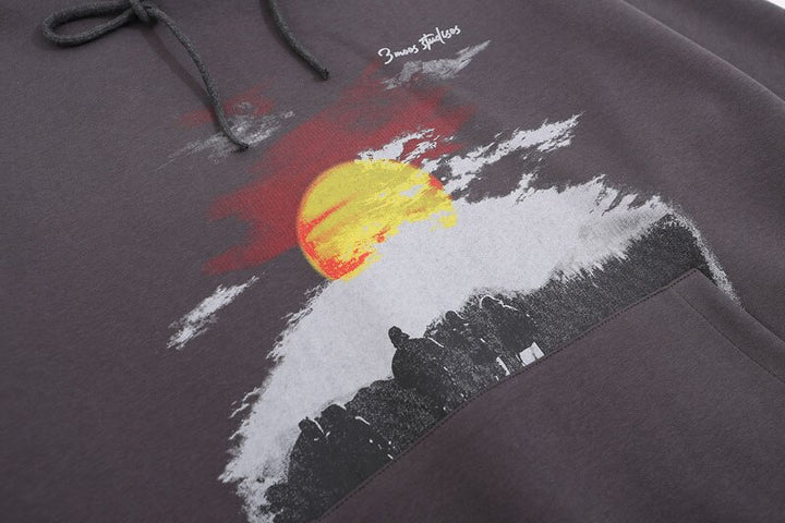 Sudadera con capucha con estampado gráfico de atardecer retro Y2K