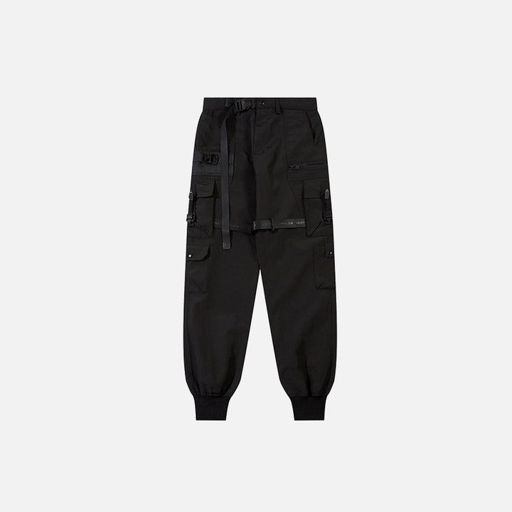 Featuring a MID waist with elastic closure, these Black Tactical Cargo Pants are crafted from a durable blend of Cotton and Polyester for lasting wearability. Classic pockets are included for an added flair of practicality.